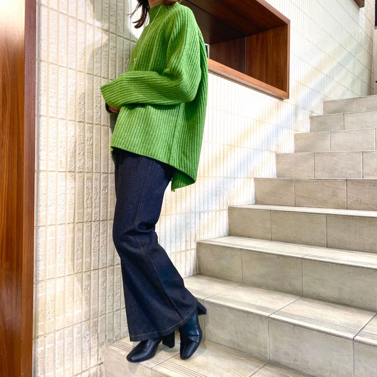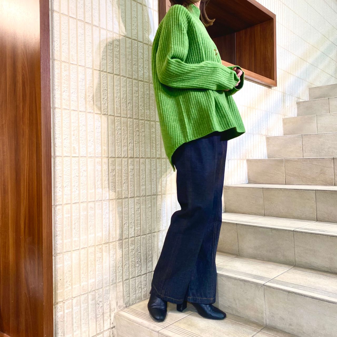 さらにファーベストを羽織ると、今年っぽくトレンド感のあるスタイルになります!