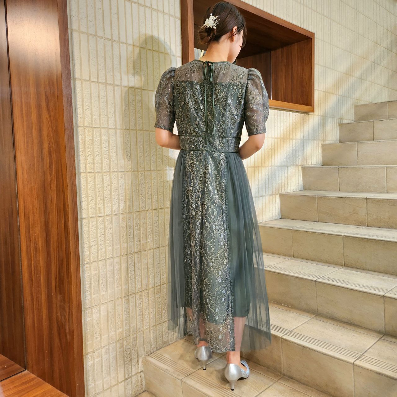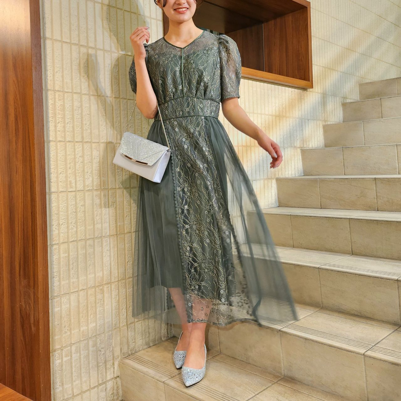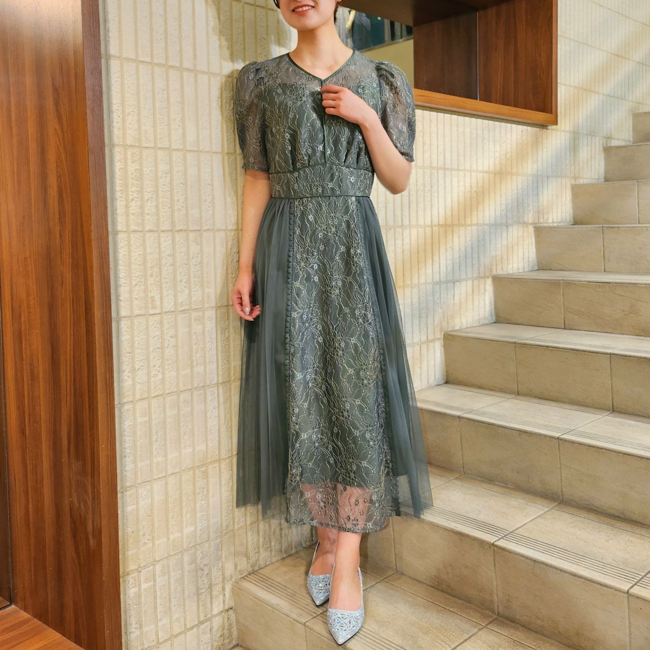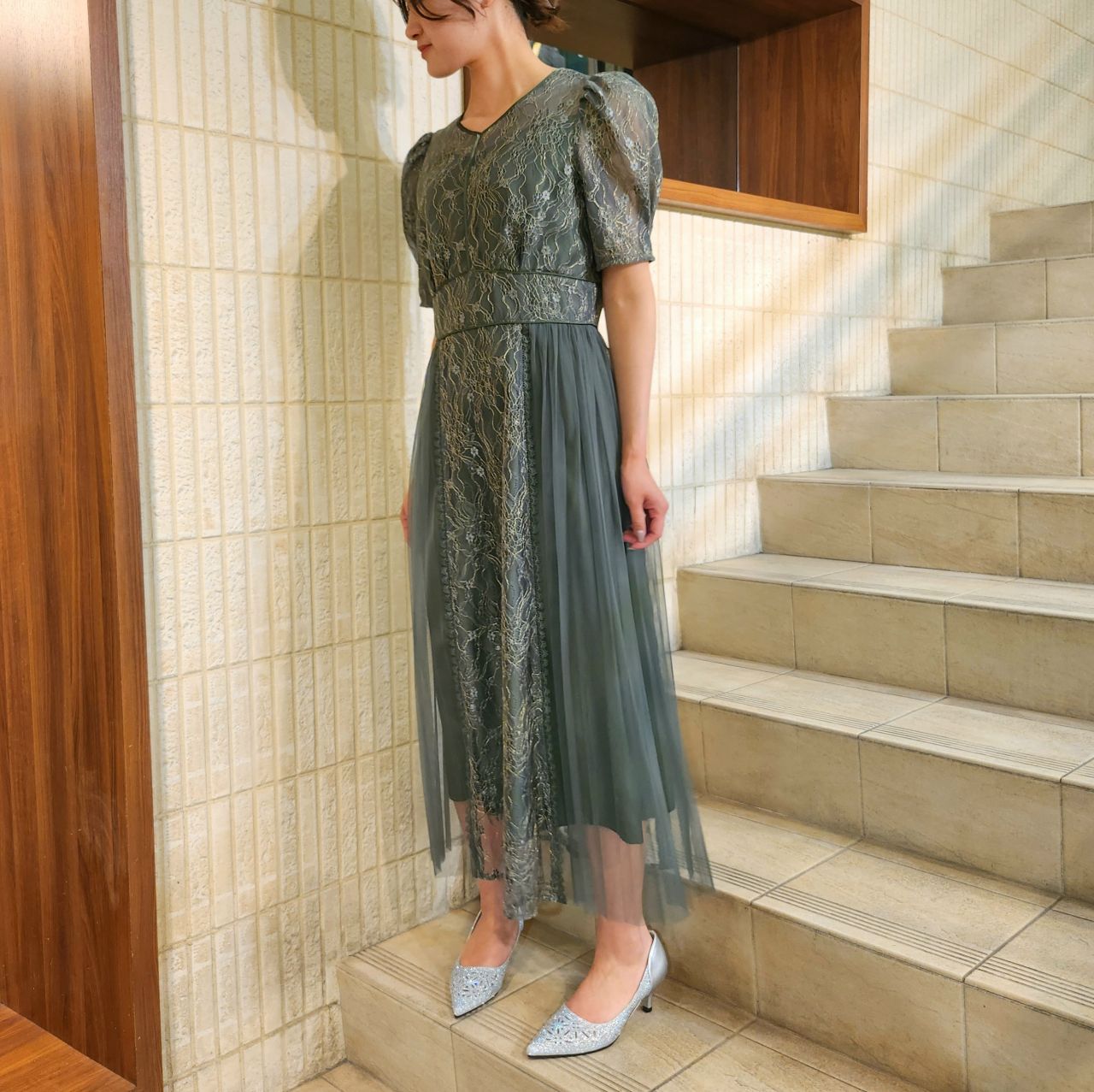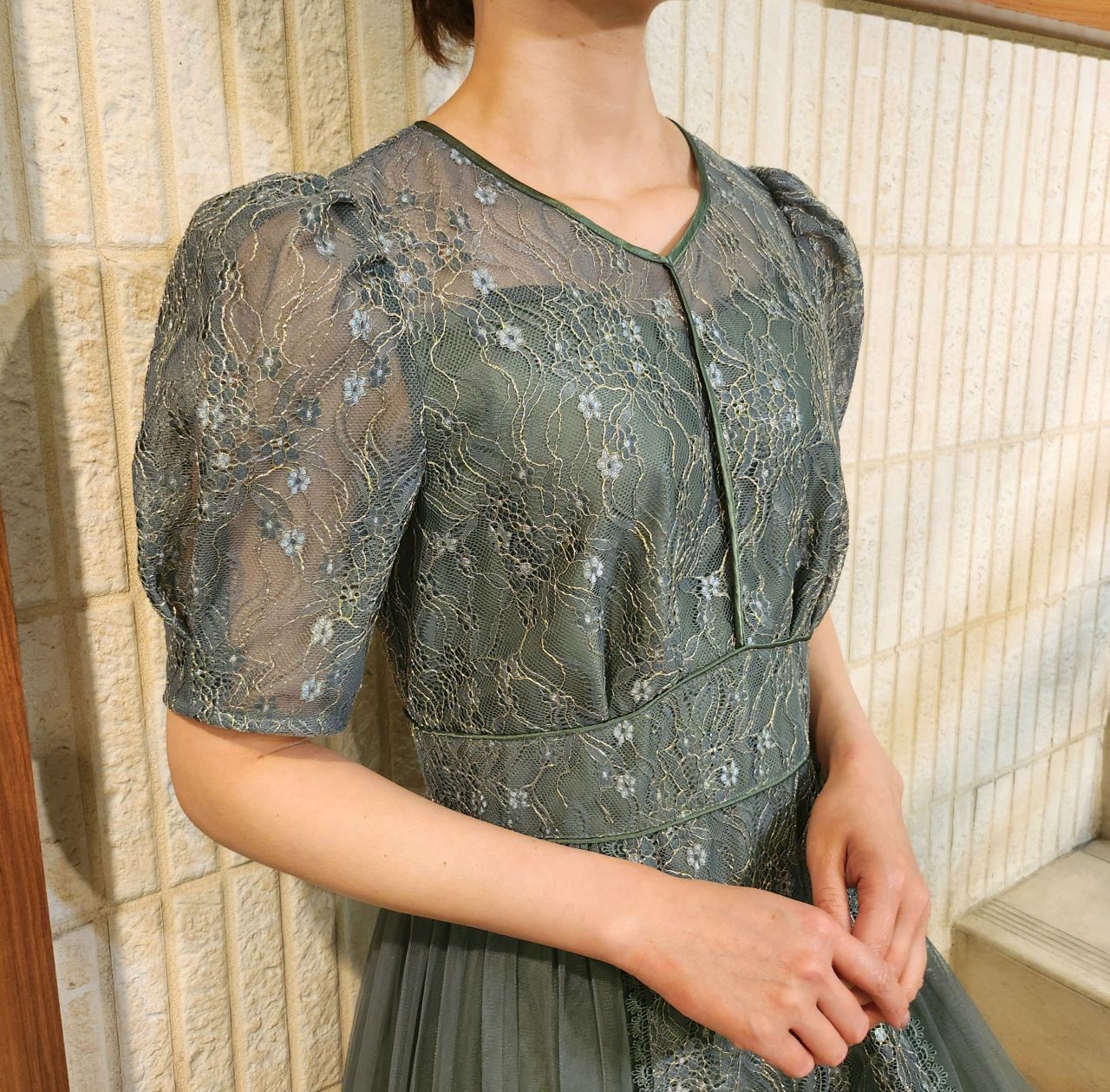 フェミニンなディティールで魅了するプリーツレースドレス♪アストリア川越店