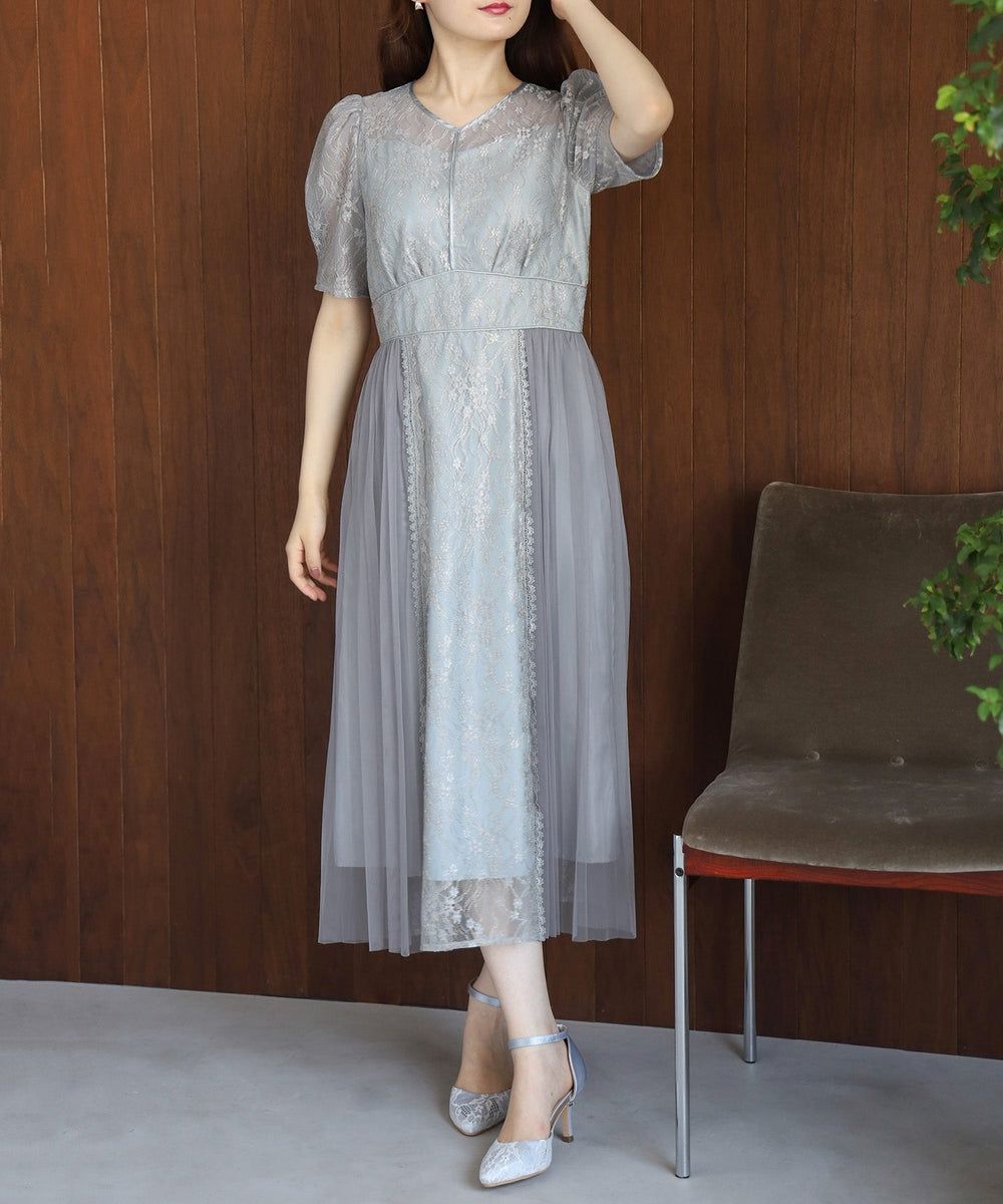 プリーツ×レースドレス
