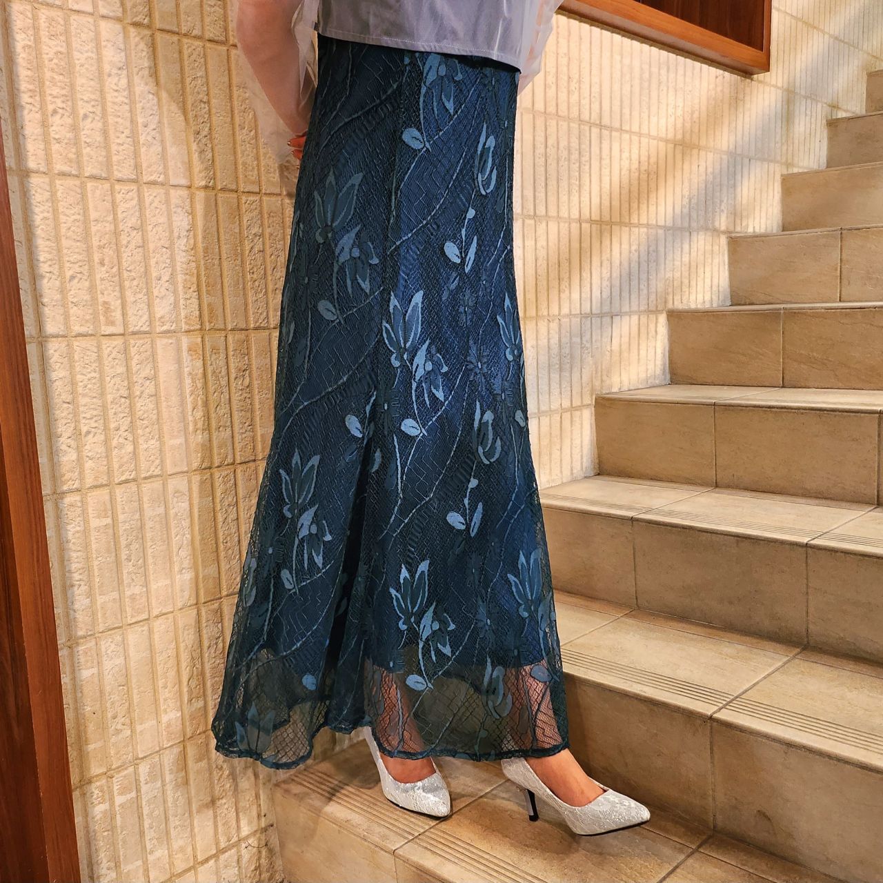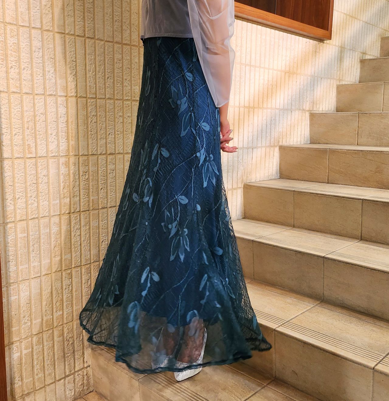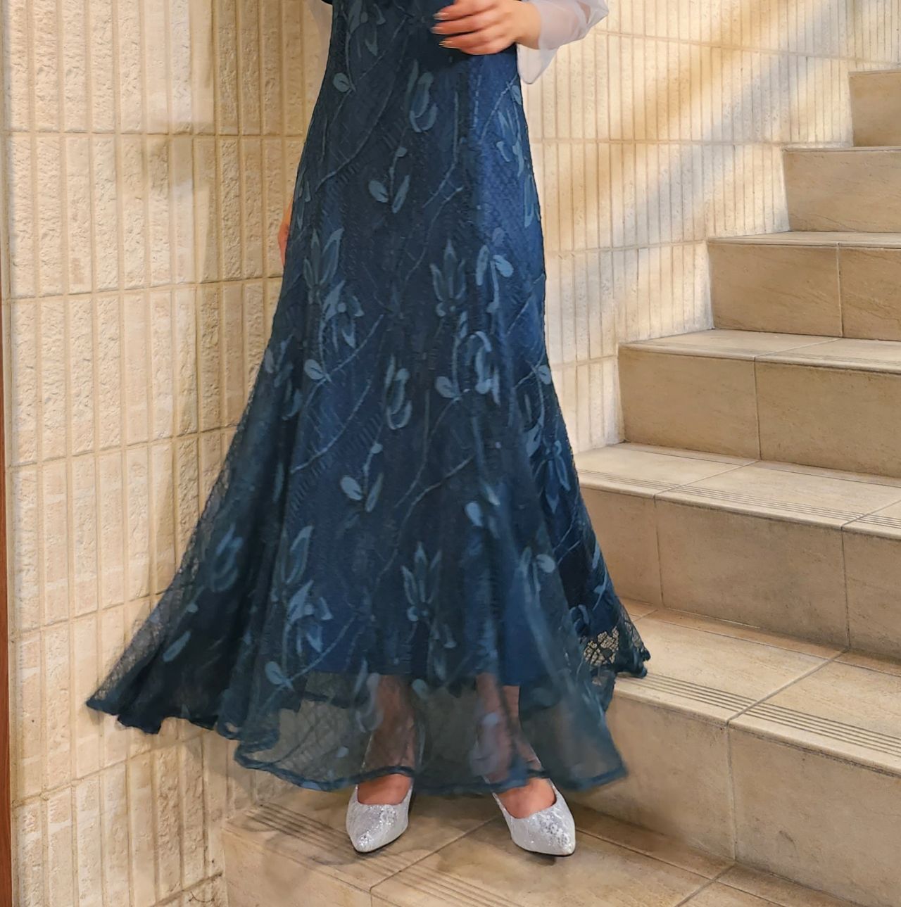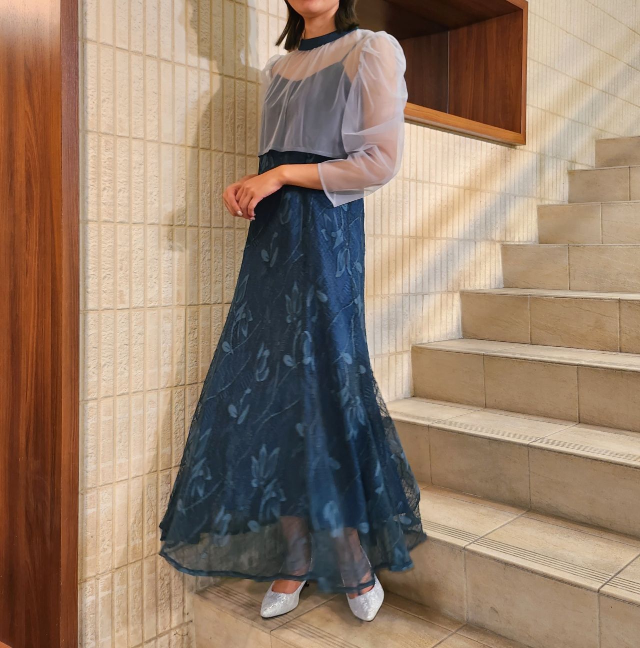 スカート部分は人気のマーメイドライン、動く度に滑らかに揺れるのでフォーマル感をアップさせてくれます♪