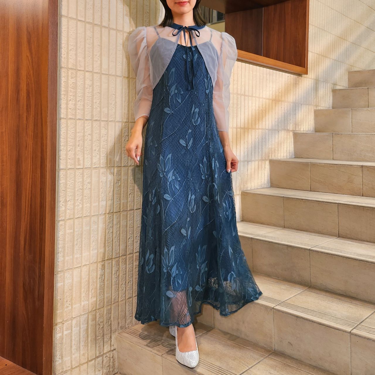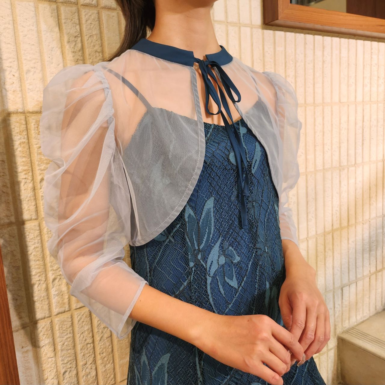 オーガンジーボレロ×総レースキャミドレス