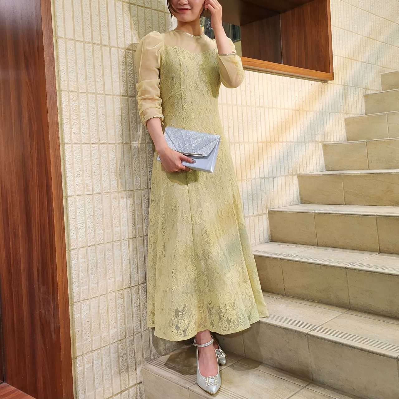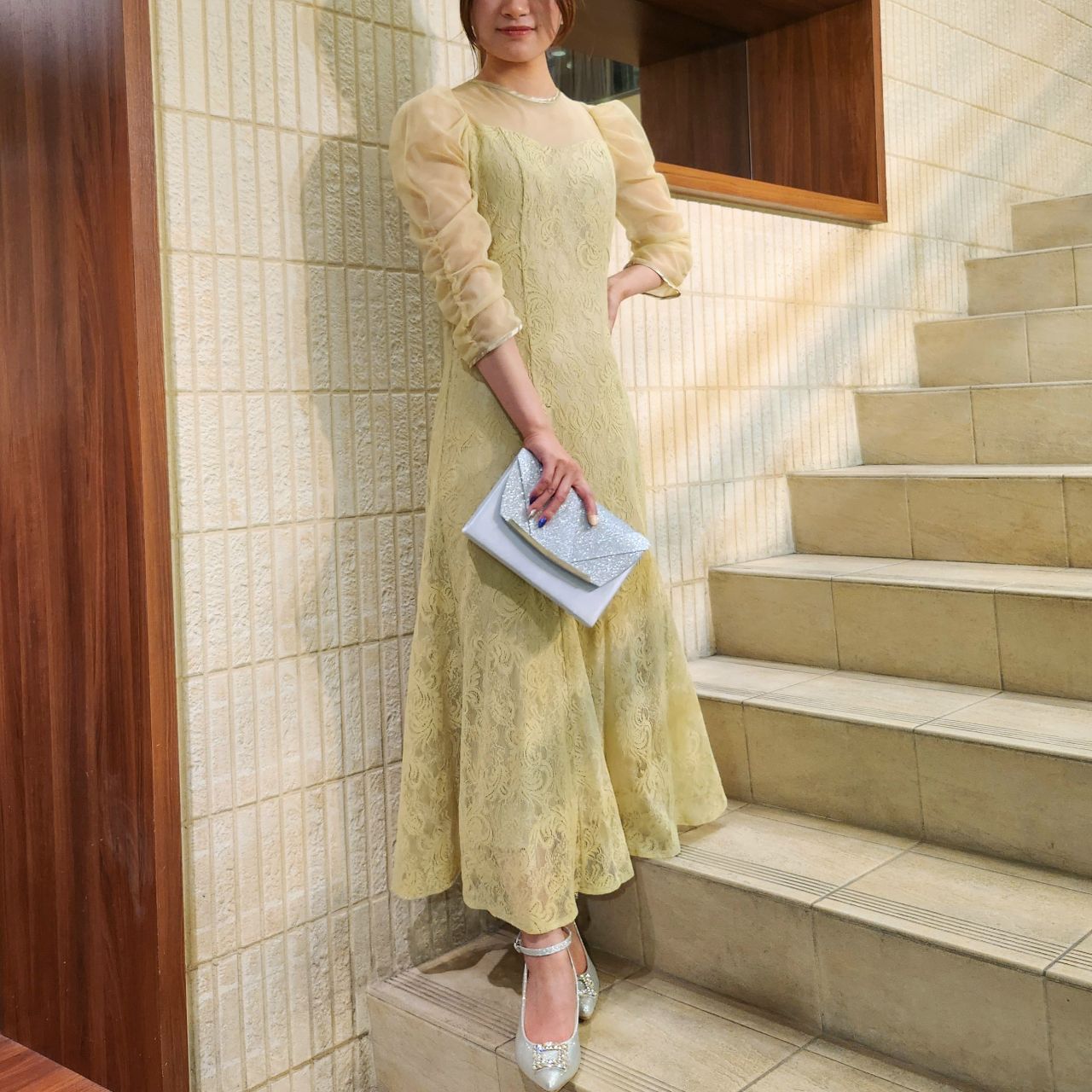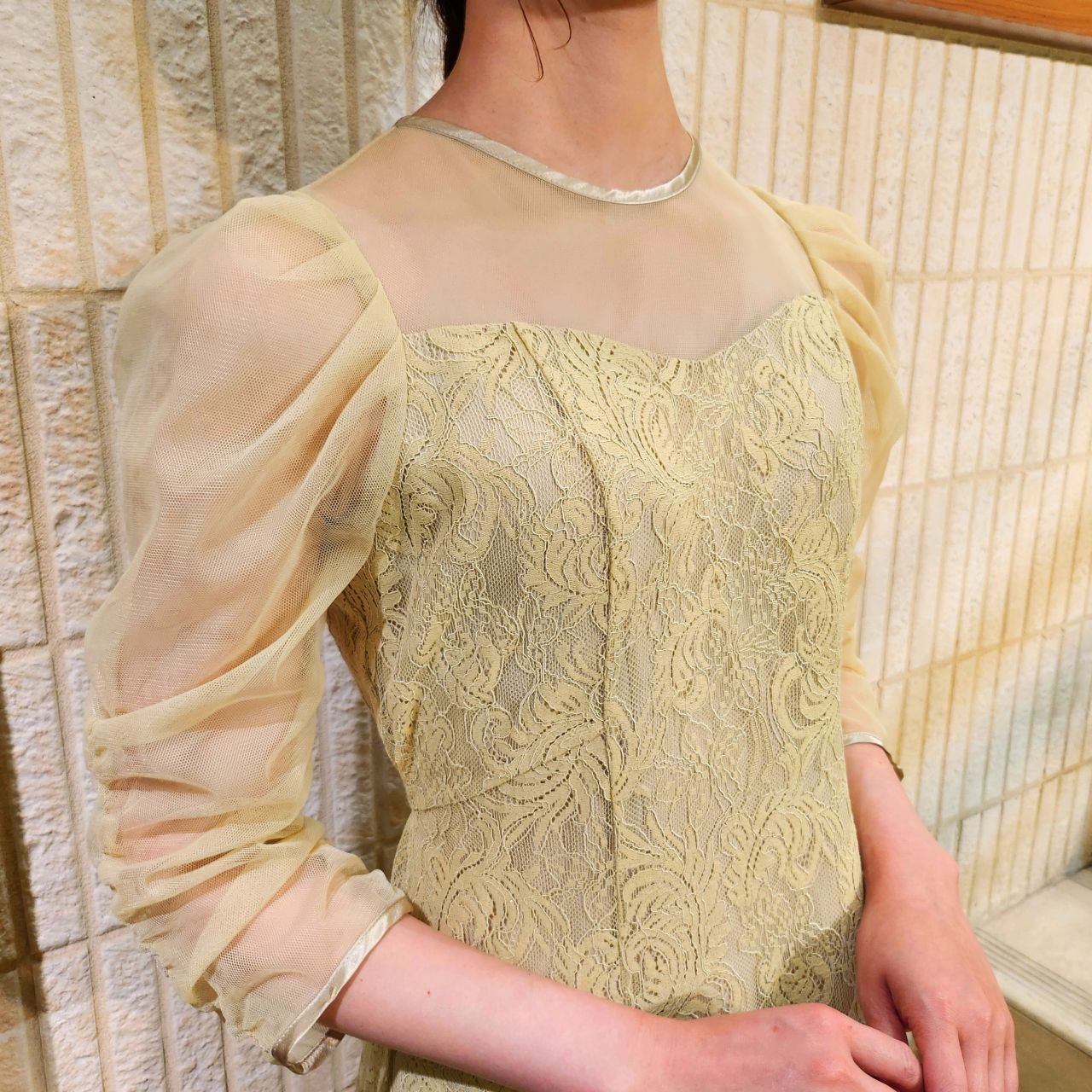 透け感のあるチュール素材と首元のサテン生地が華やかな印象になるのでアクセサリー要らずです♪