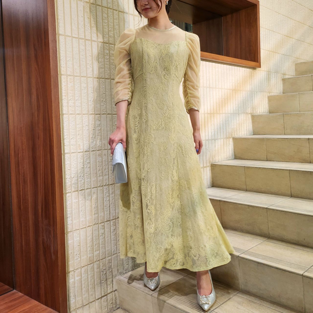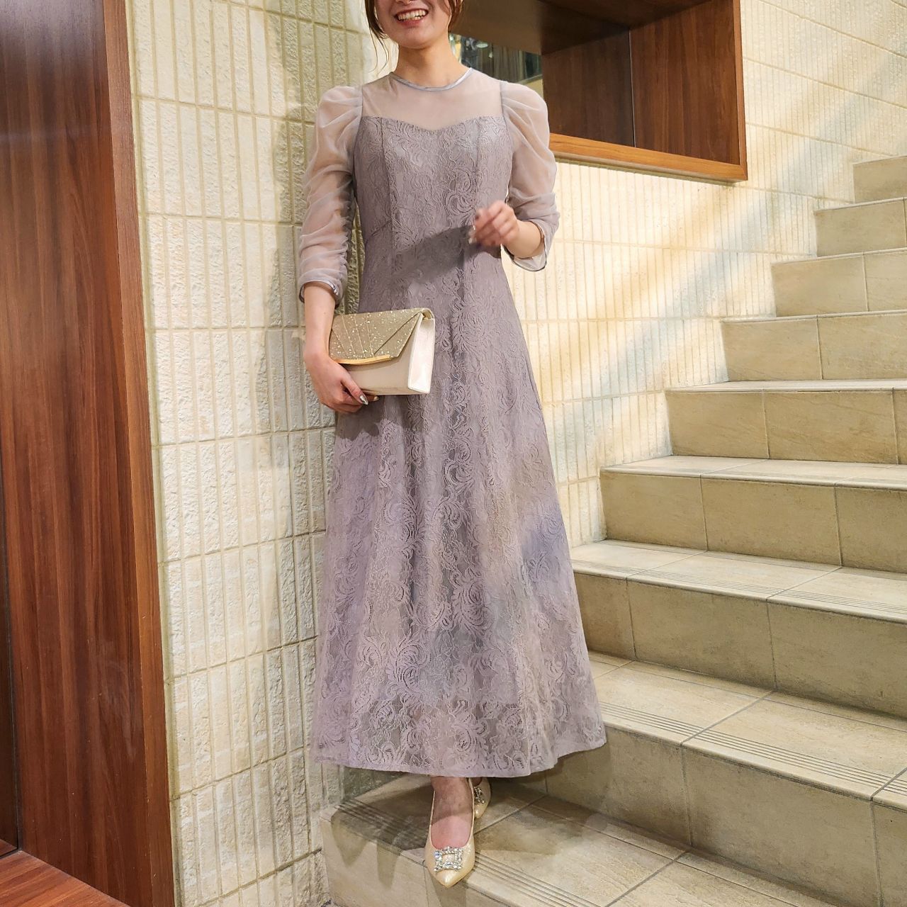 チュール生地と刺繍レースの組み合わせで上品で華やかな印象になるフォーマルドレスです♪