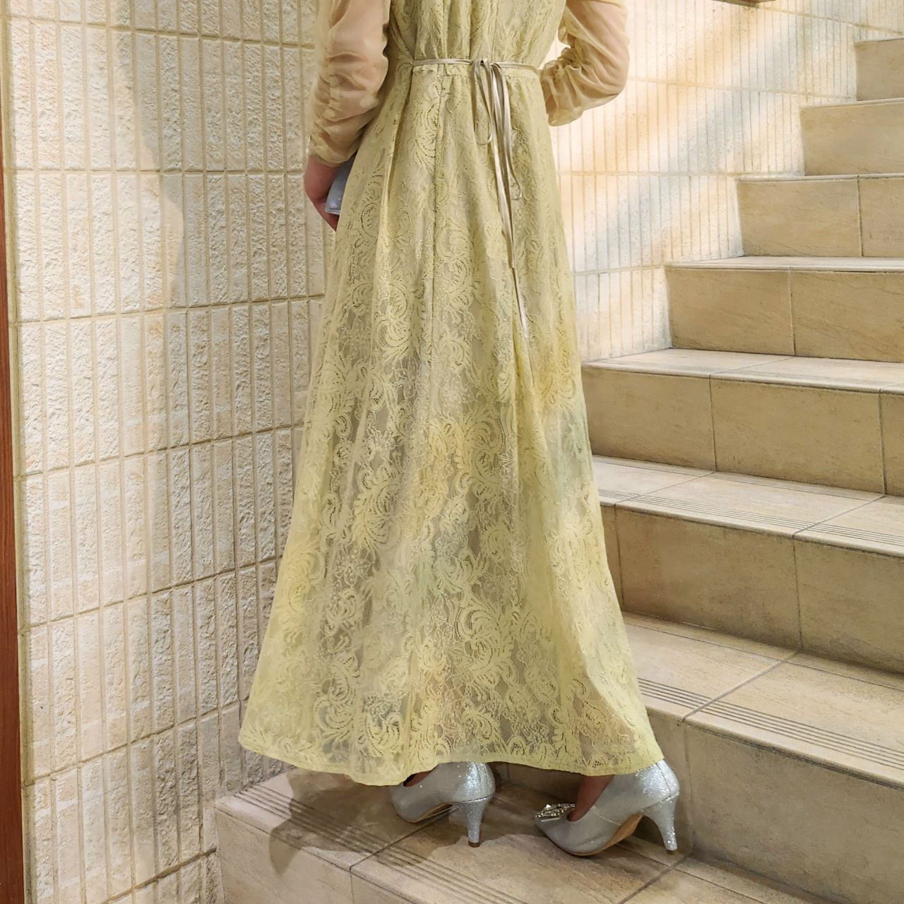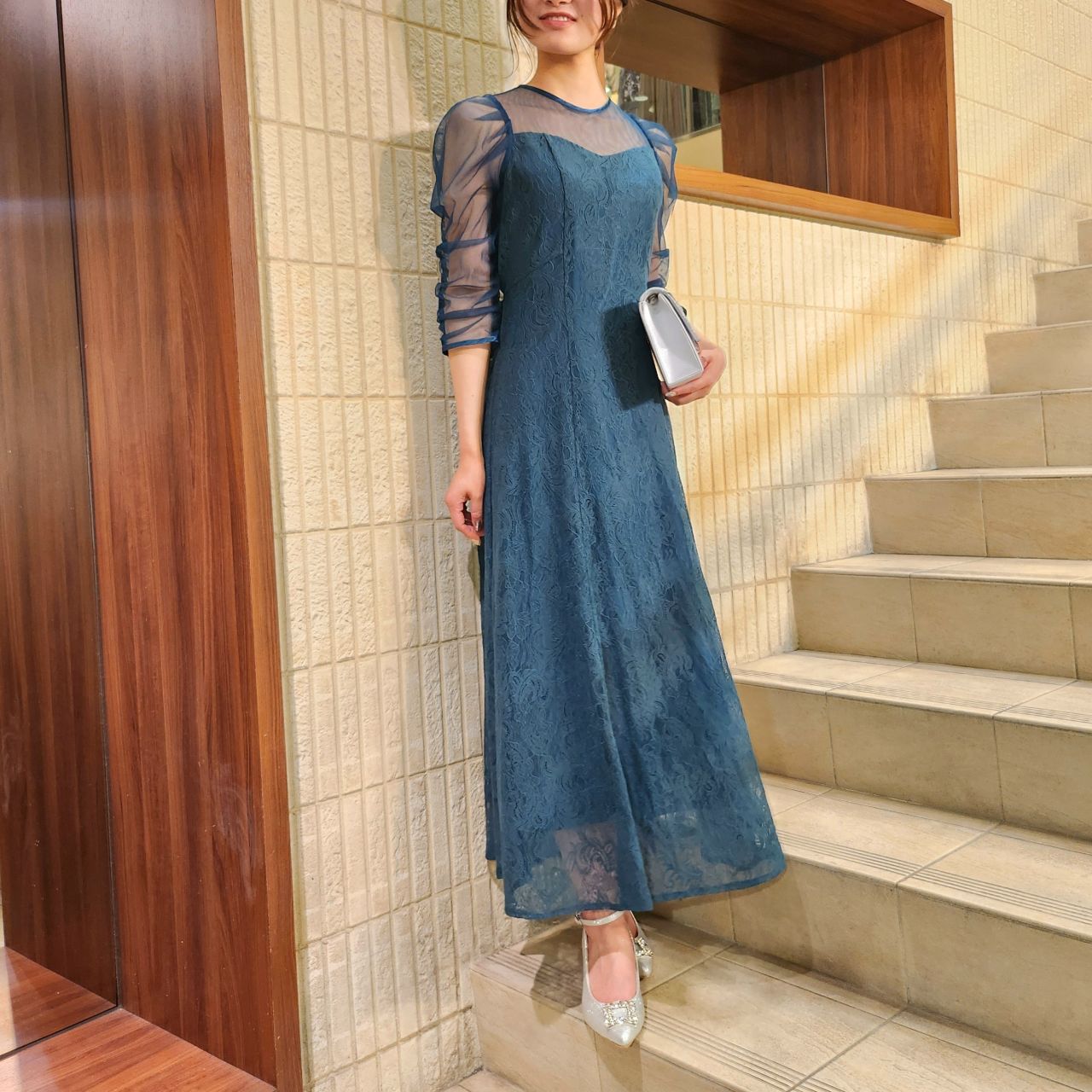 袖付きのドレスなので1枚で安心して着ていただけます◎
