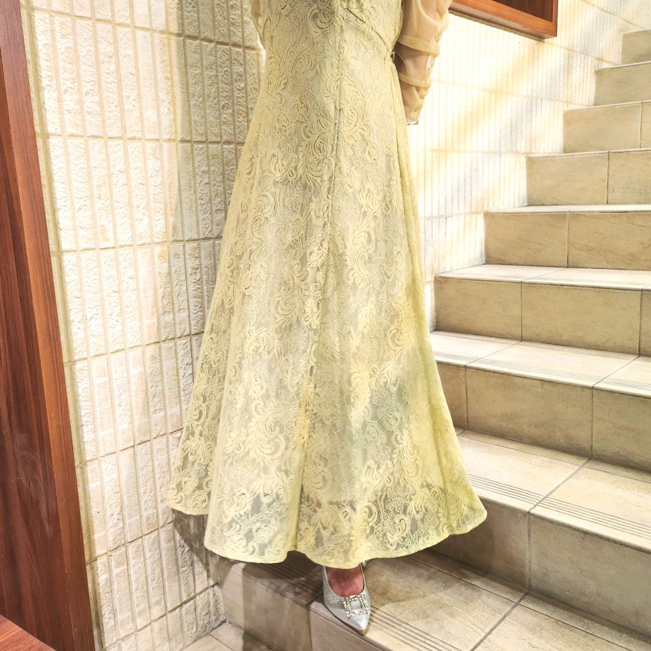 レース刺繍フレアワンピースドレス