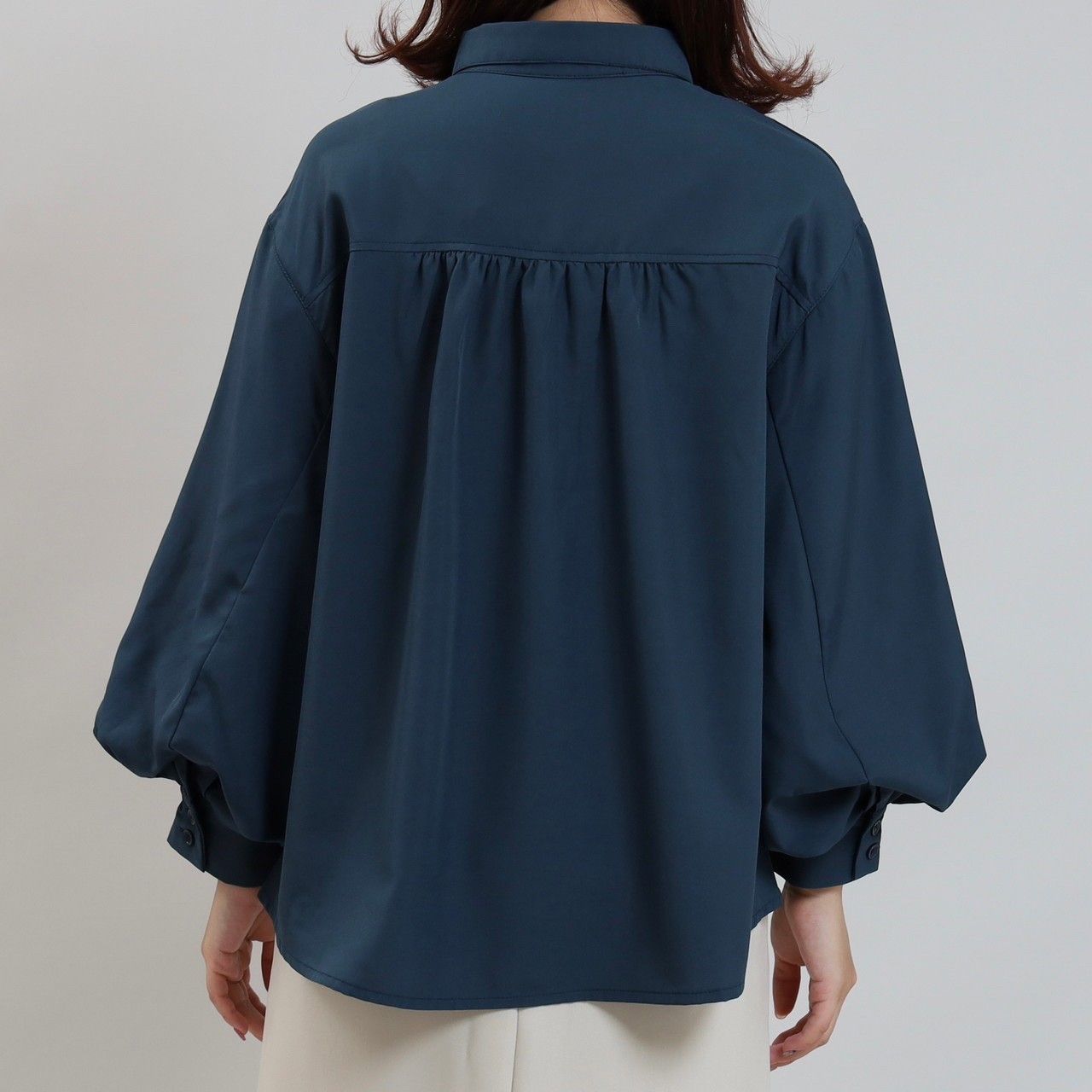 ギャザーが入っているので、ふんわりとしたシルエットで女性らしい柔らかい印象に