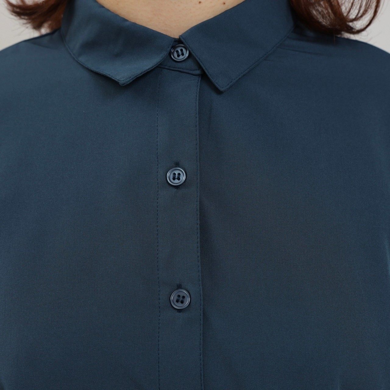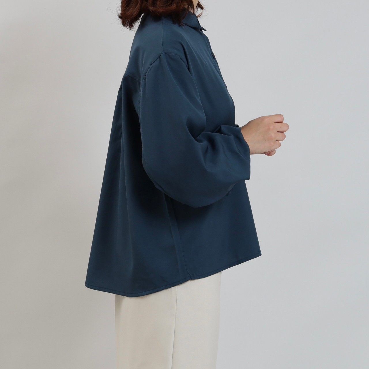 コーディネートの邪魔にならないブラウスと同色のシンプルなボタン