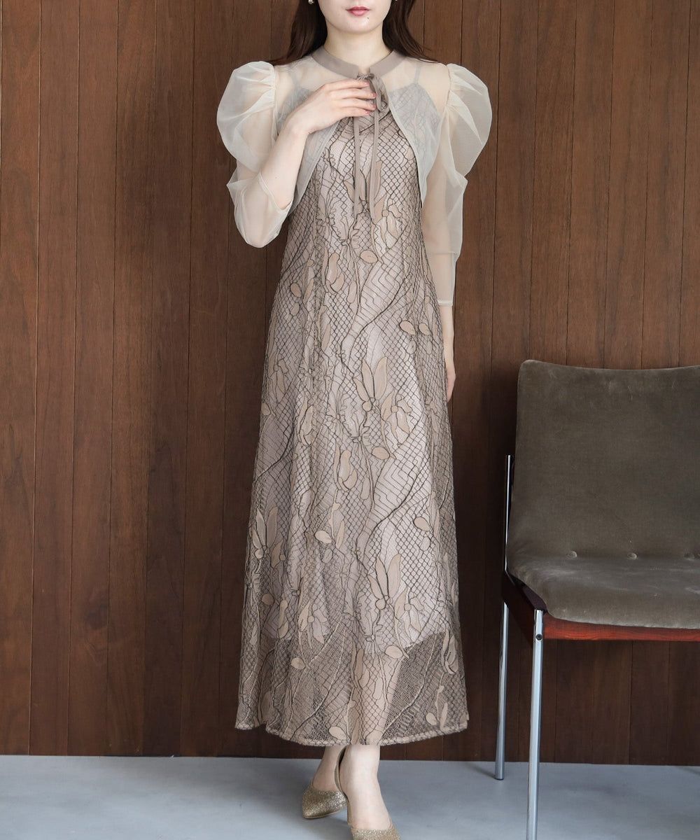 オーガンジーボレロ×キャミ総レースドレス