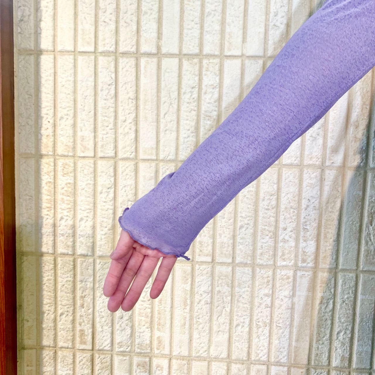 お袖は、手のひらが隠れるくらいの長さで腕周りも少しピッタリとした形になってます♪
