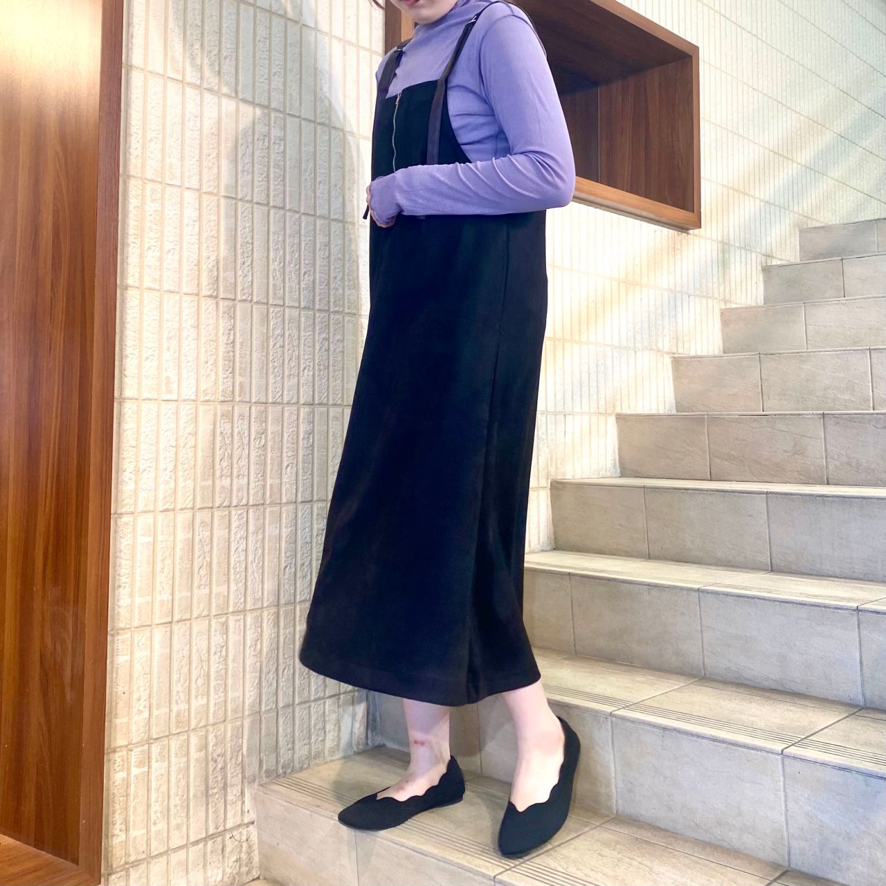 首元は少し高さのあるハイネックなので、ハイネックが苦手な方でも楽に着用して頂けます!