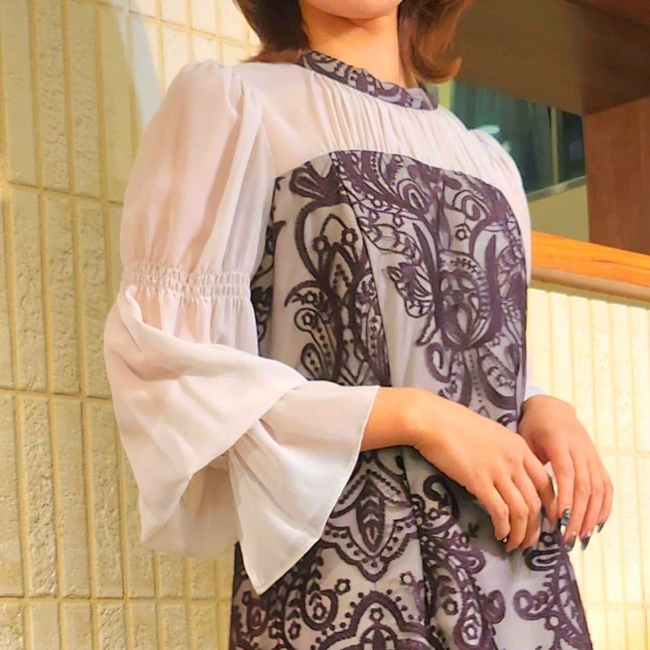 新作♪ダマスク柄の刺繍レースがクラシカルな1着♪Iラインダマスクギャザードレス♪アストリア川越店