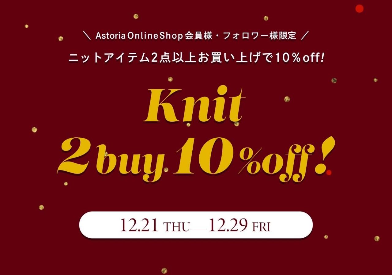 対象のニットアイテムを2点以上お買い上げで10%offになるキャンペーンを開催中です!