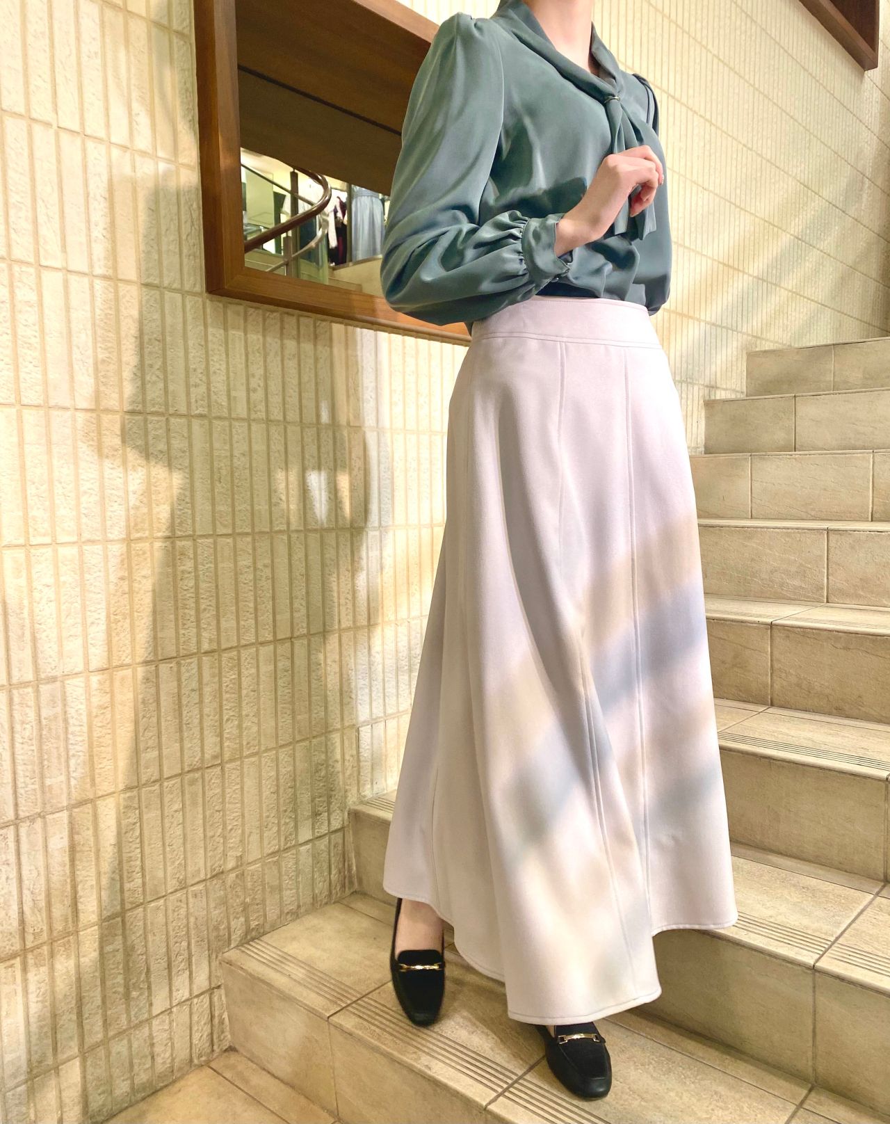 杢調ロングフレアスカート