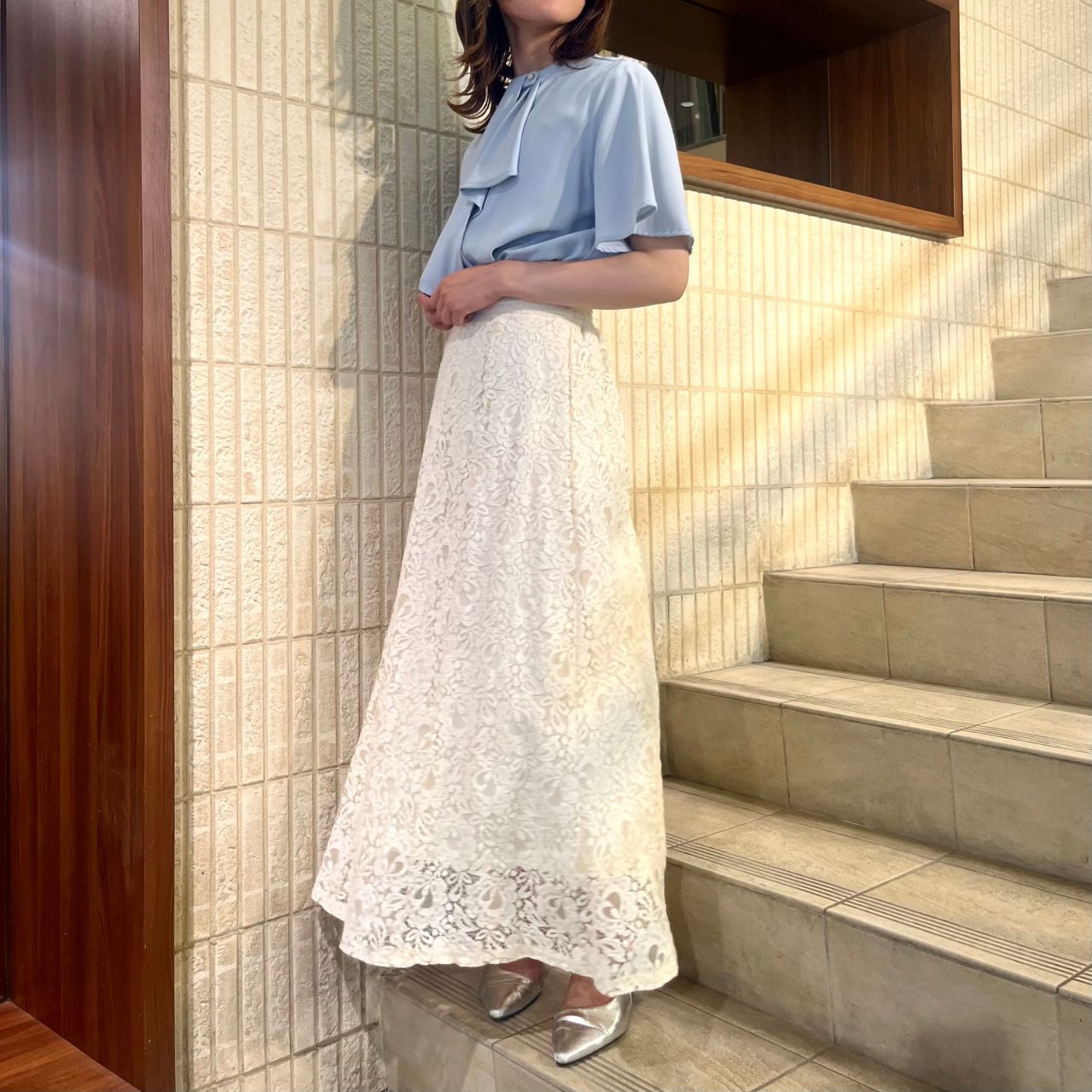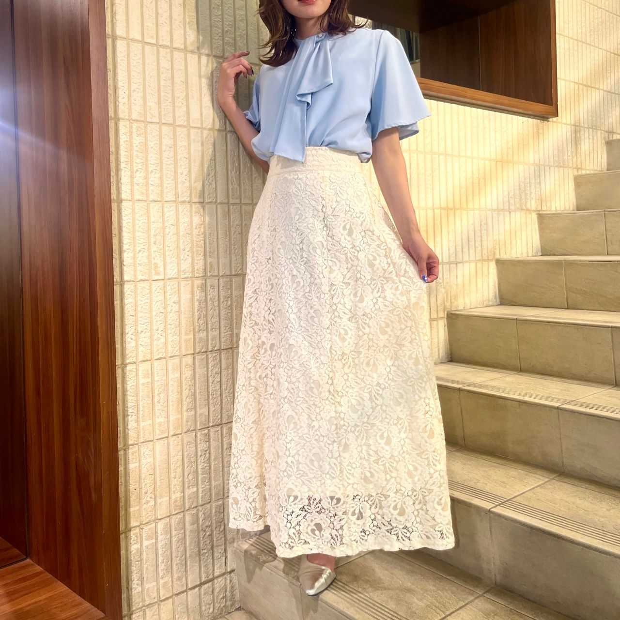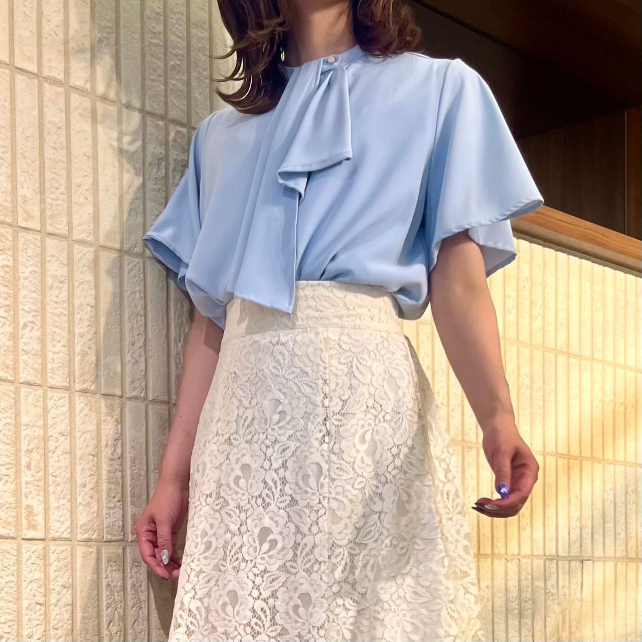 タイトスカートやマーメイドスカートと合わせるとより女性らしい品のあるコーデが完成します❁⃘