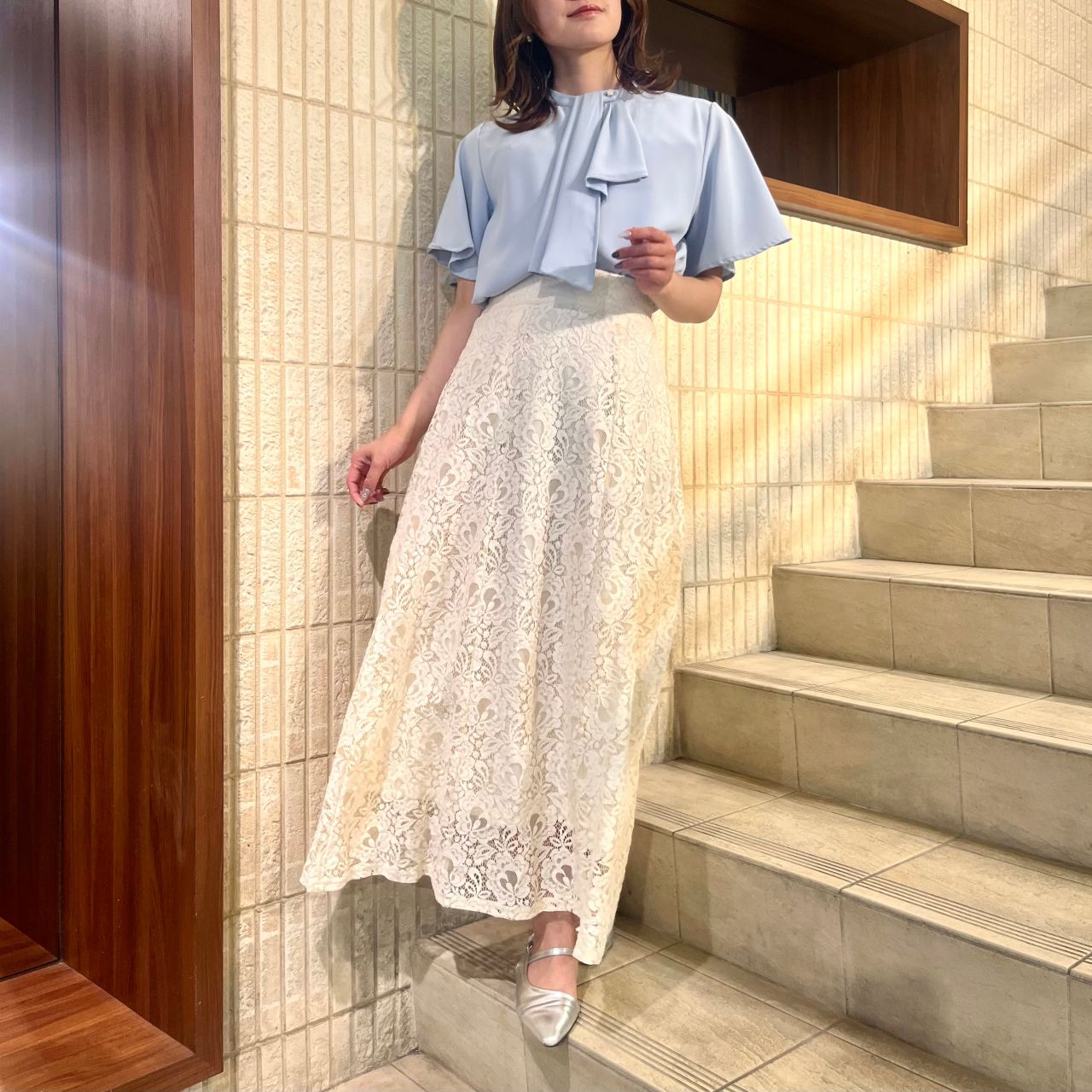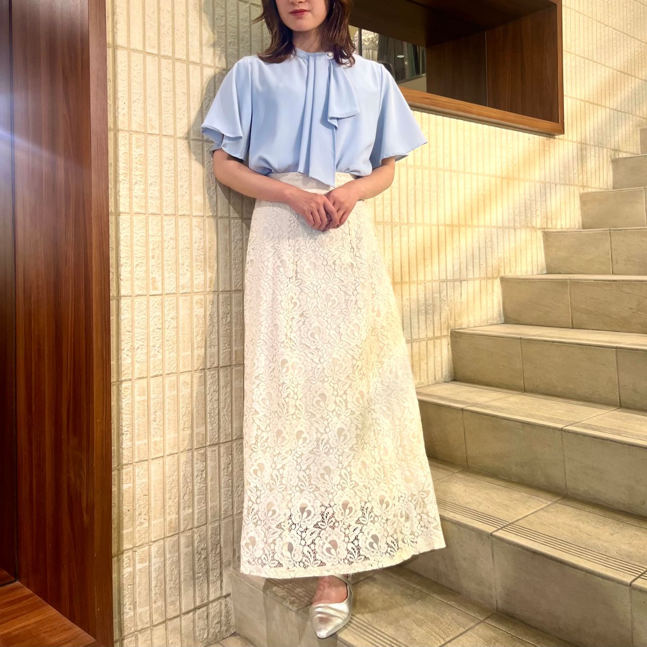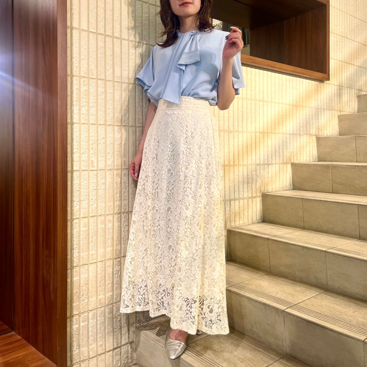 タイトスカートやマーメイドスカートと合わせるとより女性らしい品のあるコーデが完成します❁⃘