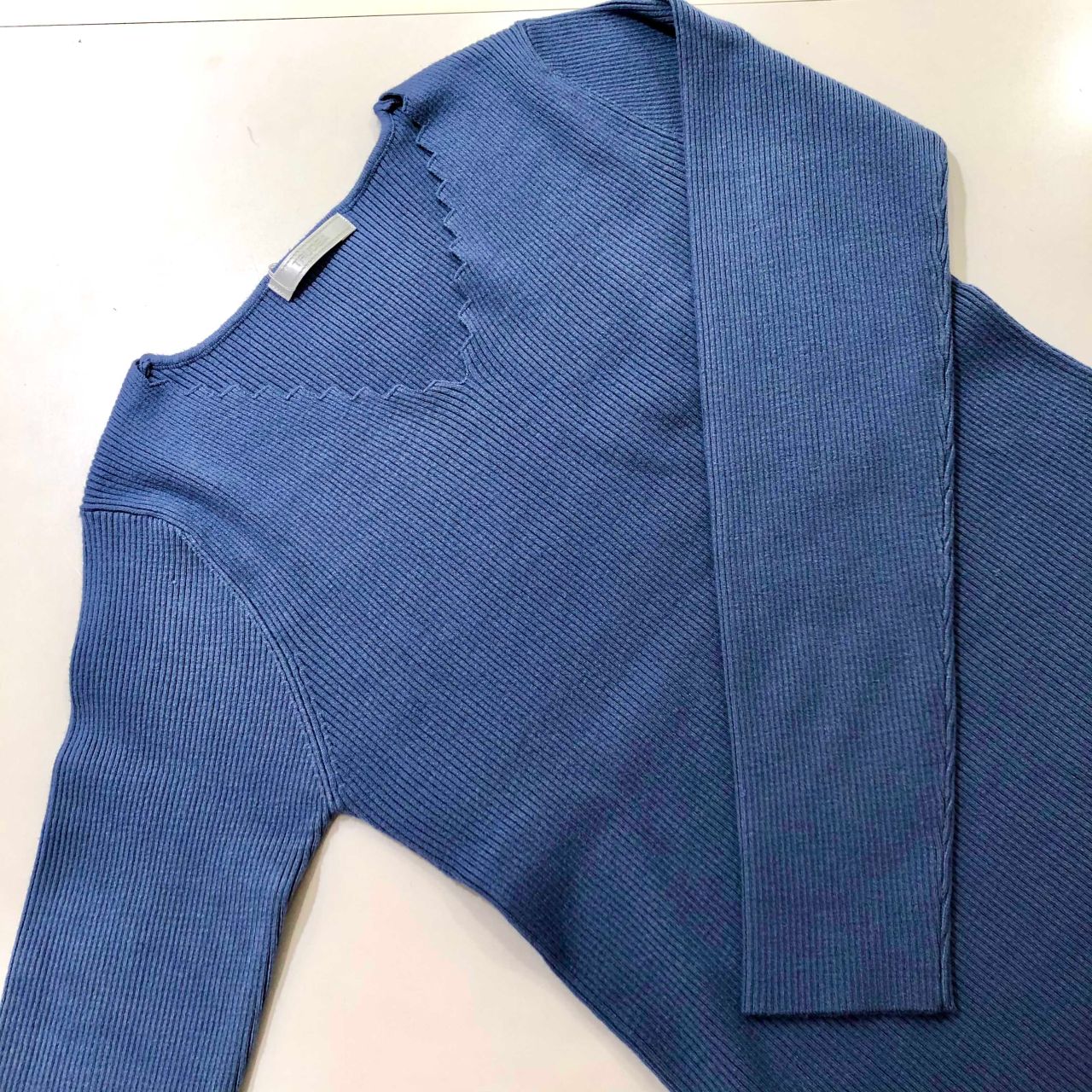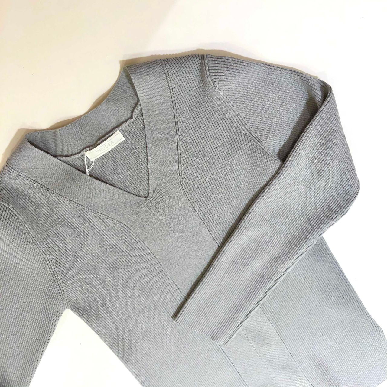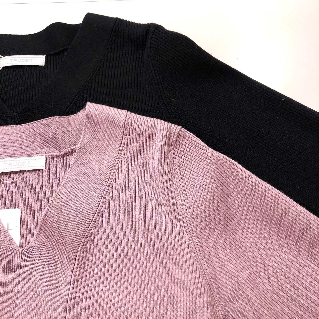 リブ編みでほどよいフィット感が出るので、ロングスカートやワイドパンツなどを合わせるとキレイですよ♫
