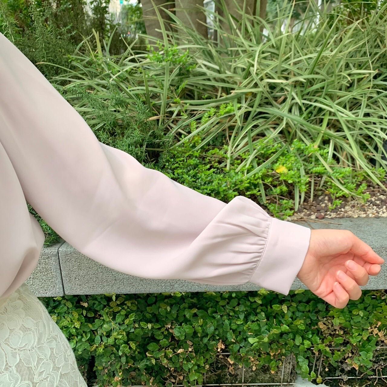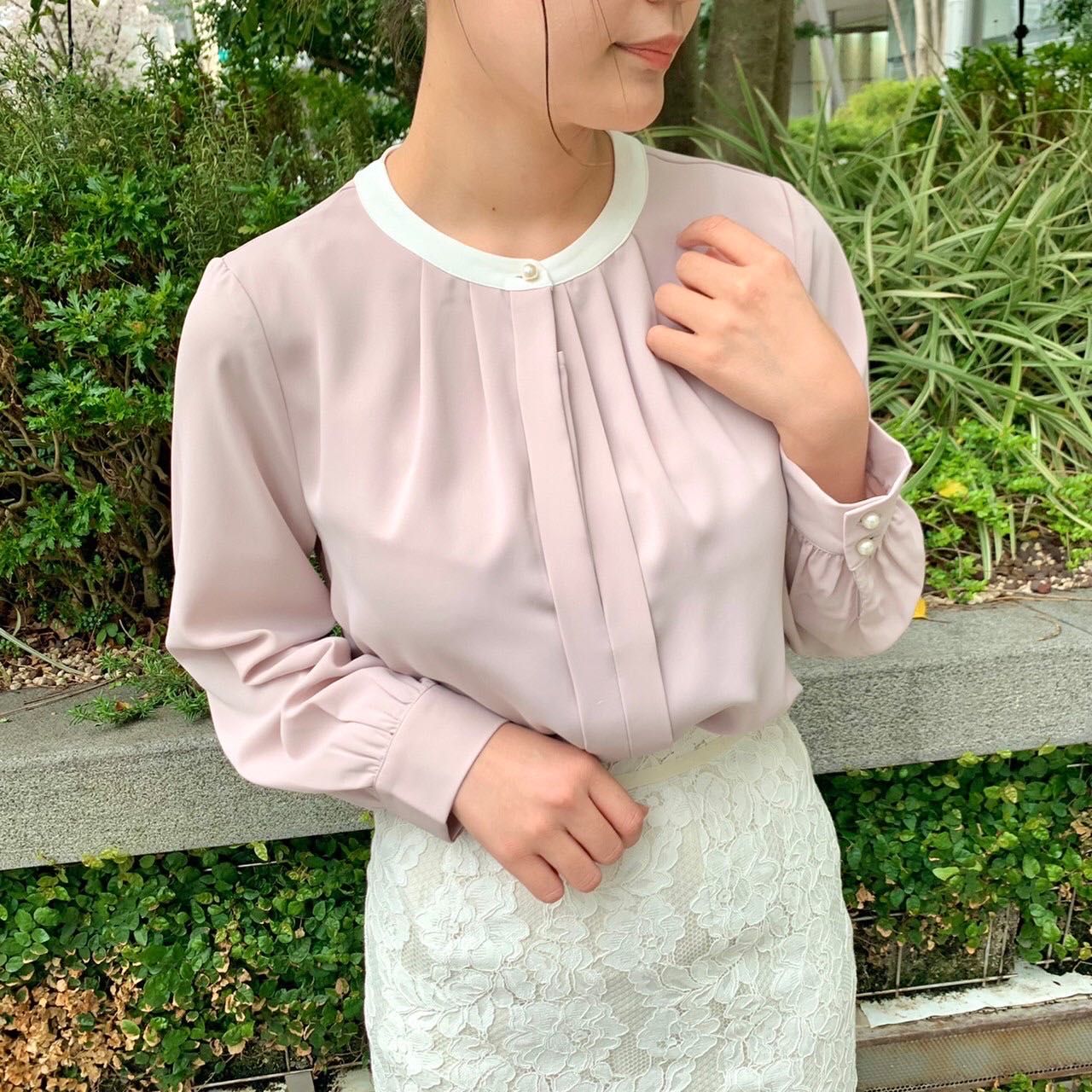 首元と袖口のパールボタンで、華やかな印象に♡