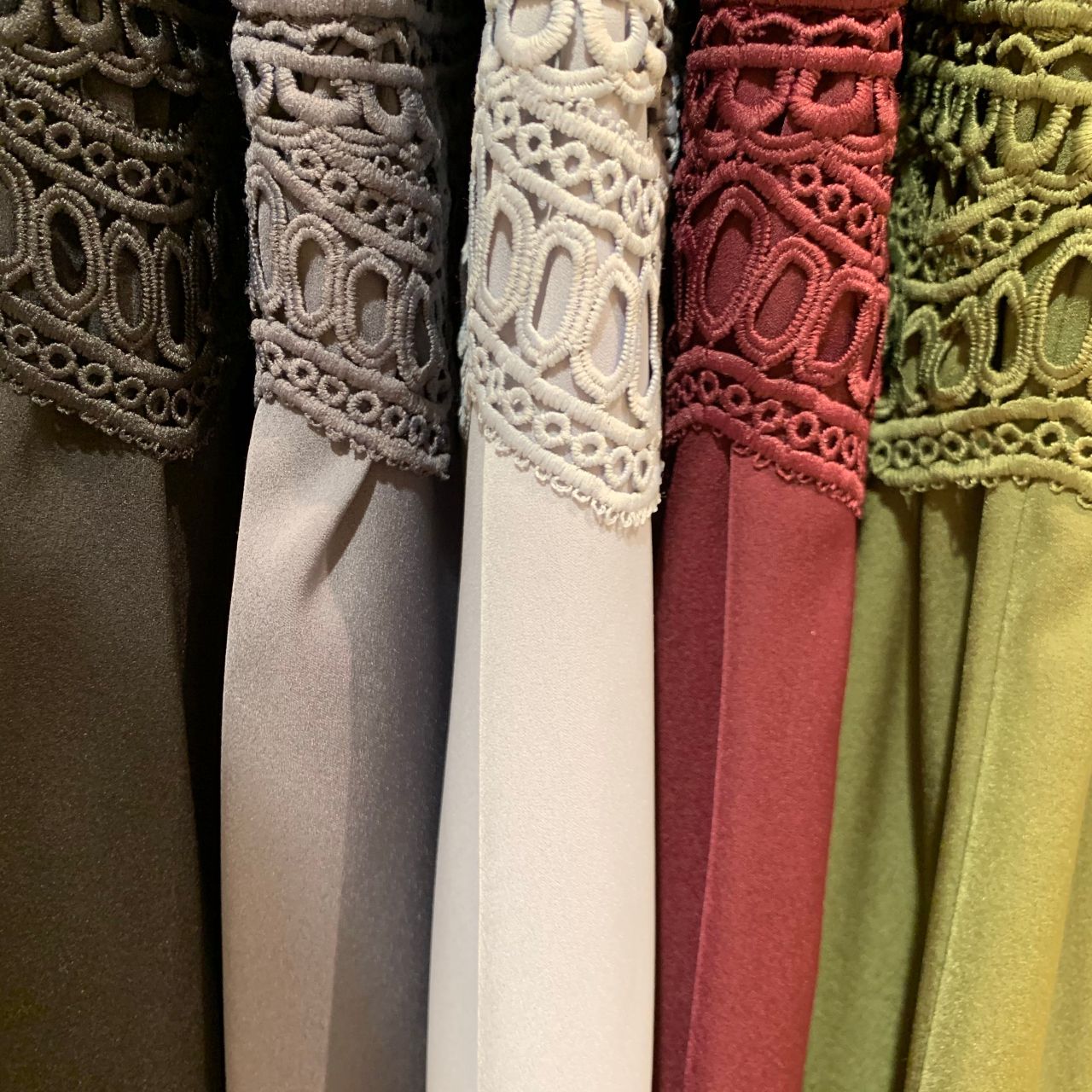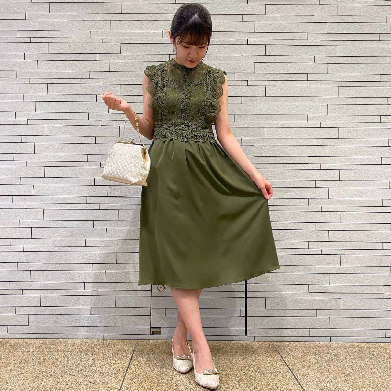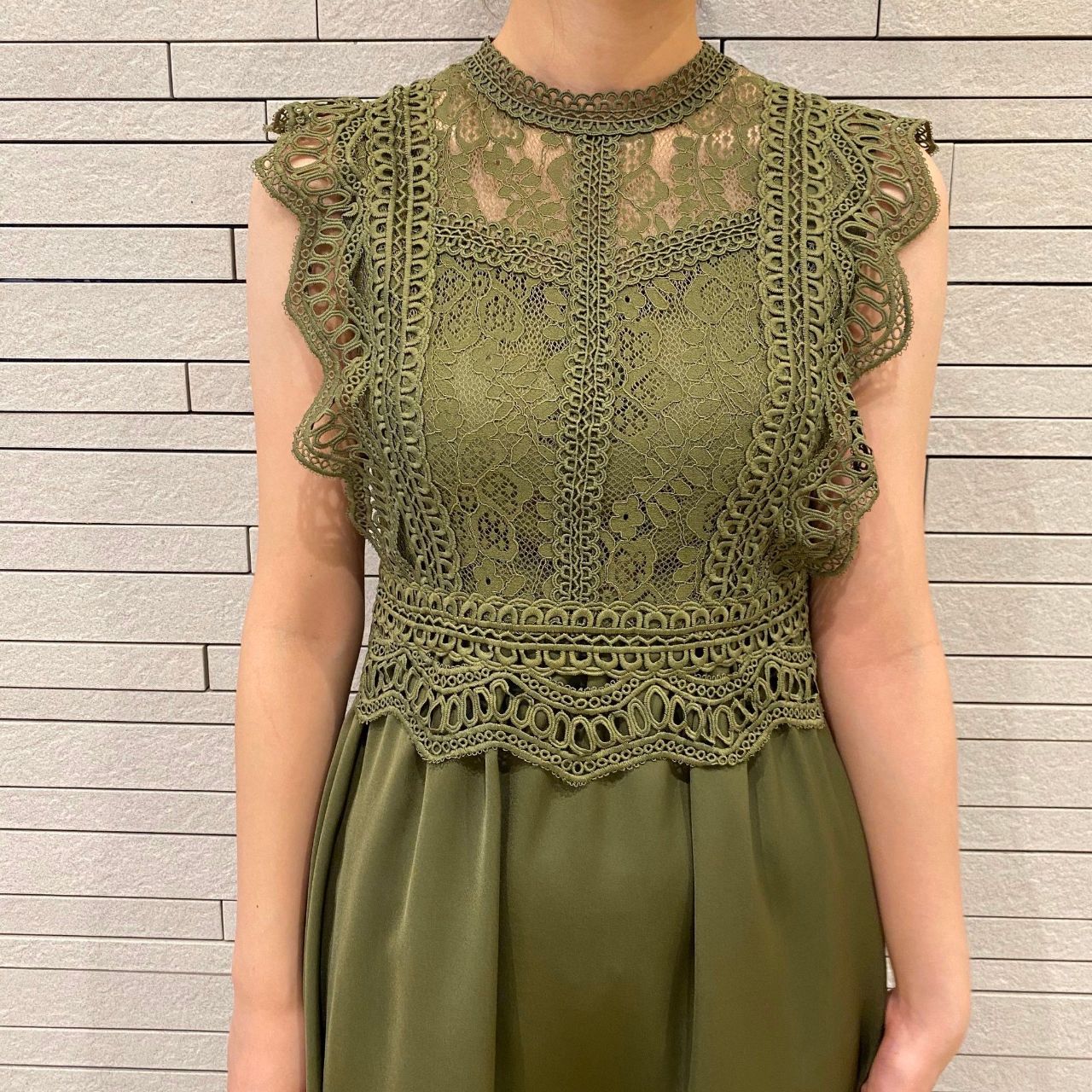 袖も肩が隠れるフレンチスリーブで、それもスカラップになっていたり、セットアップかのようなデザインも素敵ですね。