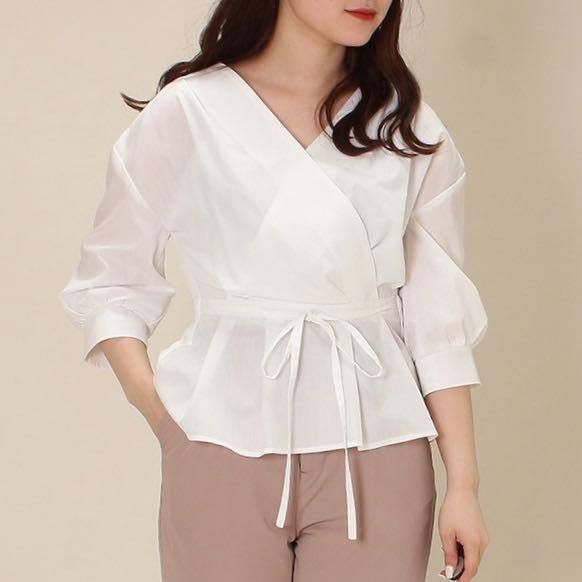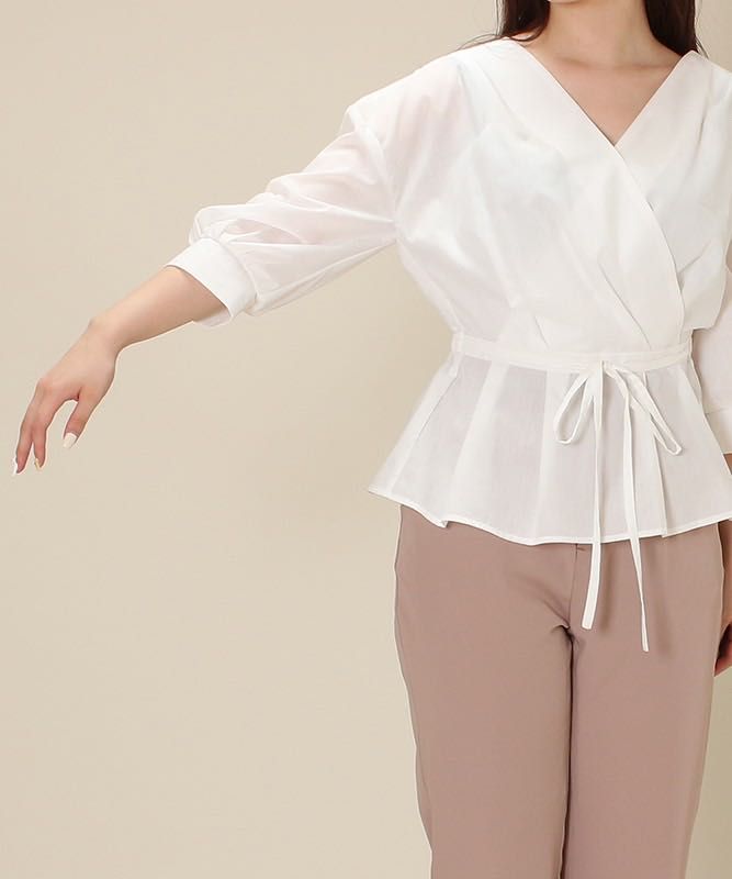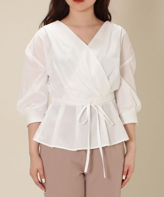 トレンドのサステナブルにぴったりな、コットン素材のナチュラルなカシュクールブラウス☆