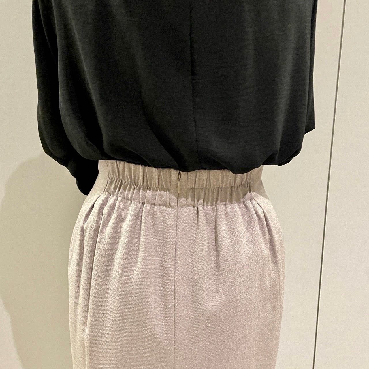 後ろはゴムになっているので、お仕事中も快適にお召しいただけます♩