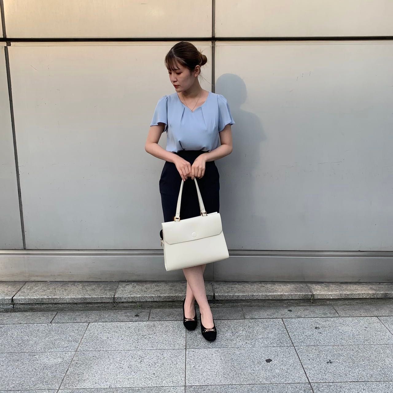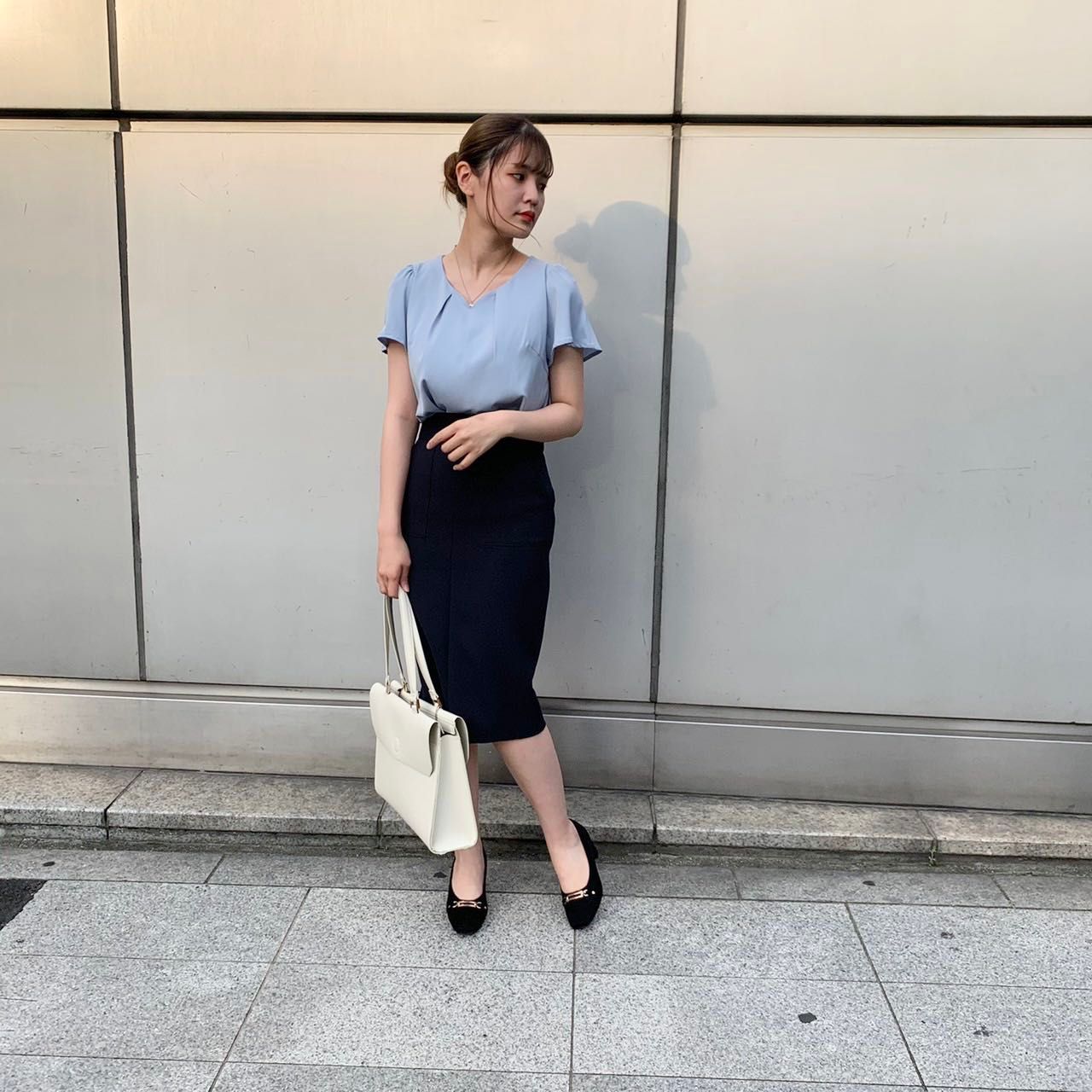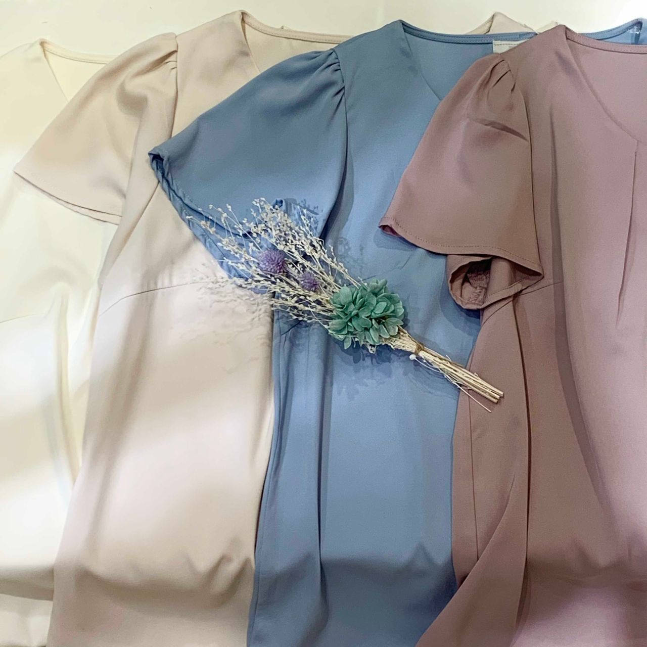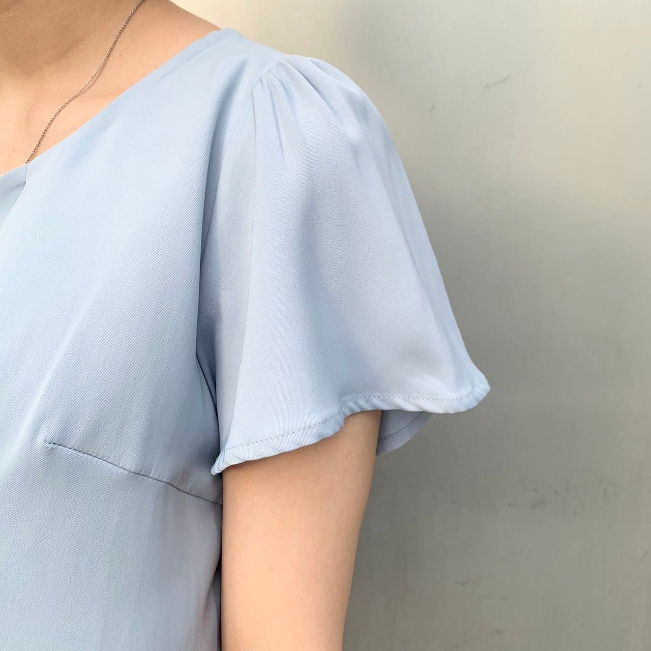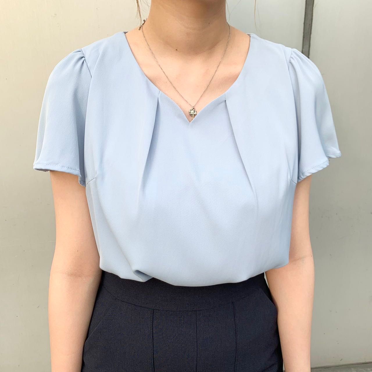 首元タック部分がとても女性らしいですし、Vネックなので、デコルテラインがスッキリ綺麗にみえます☺︎