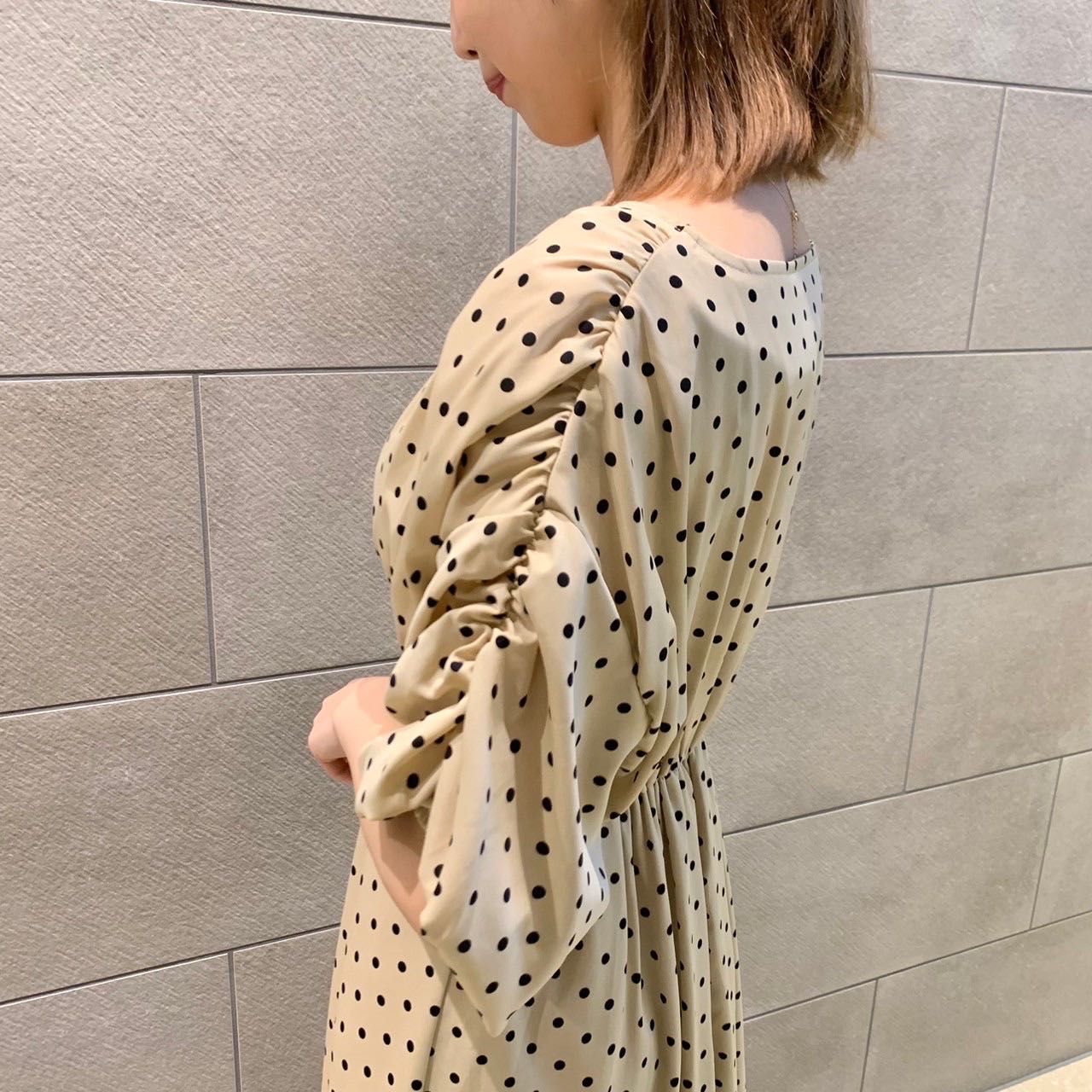●Vネックシャーリングスリーブワンピース●