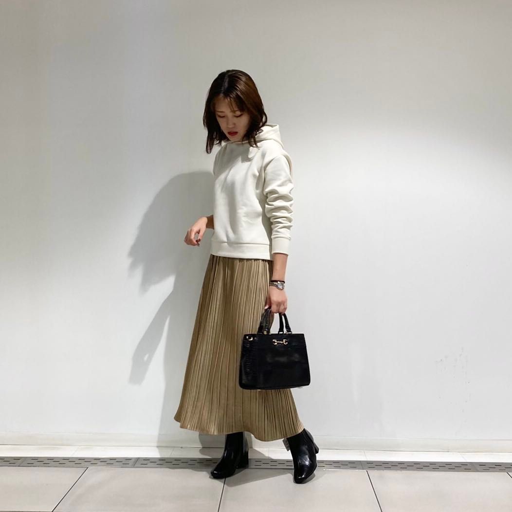 パーカー、スエードプリーツスカートどちらとも春先まで着れる商品になっております!!!