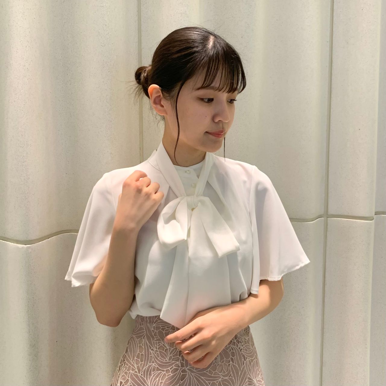 タイデザインはかっちりなりがちですが、柔らかいリボンタイなので女性らしくフェミニンな印象に見えますよ❤︎