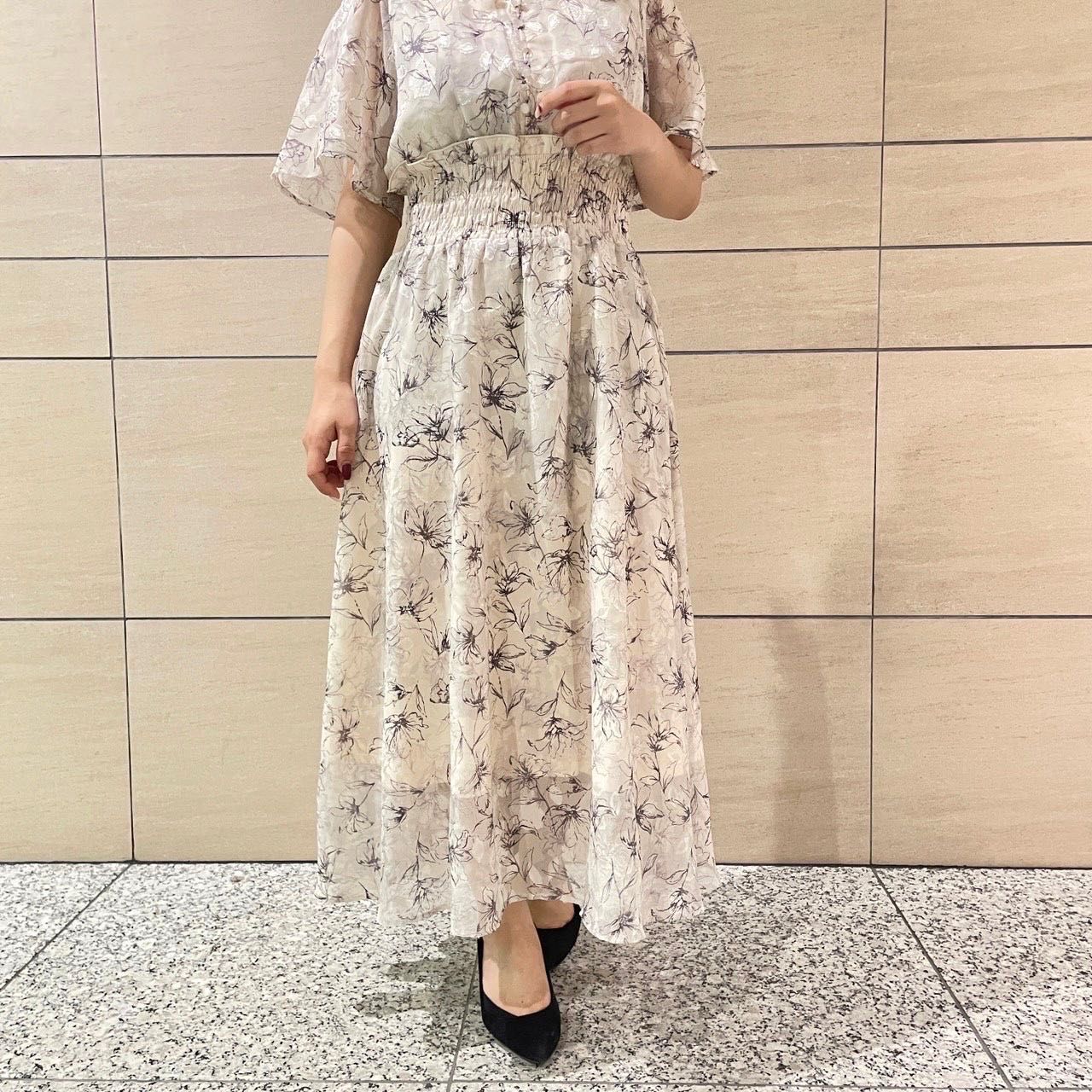 線描きの花柄で大人フェミニンな雰囲気に♩