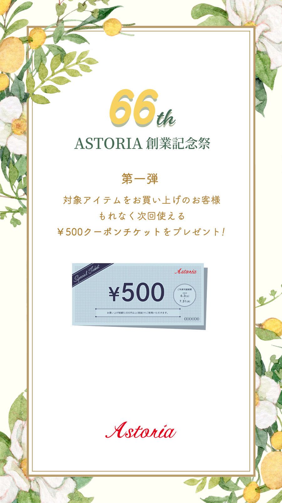ただいま、ヤエチカ店ではアストリア創業66周年を記念してキャンペーンを開催しております!