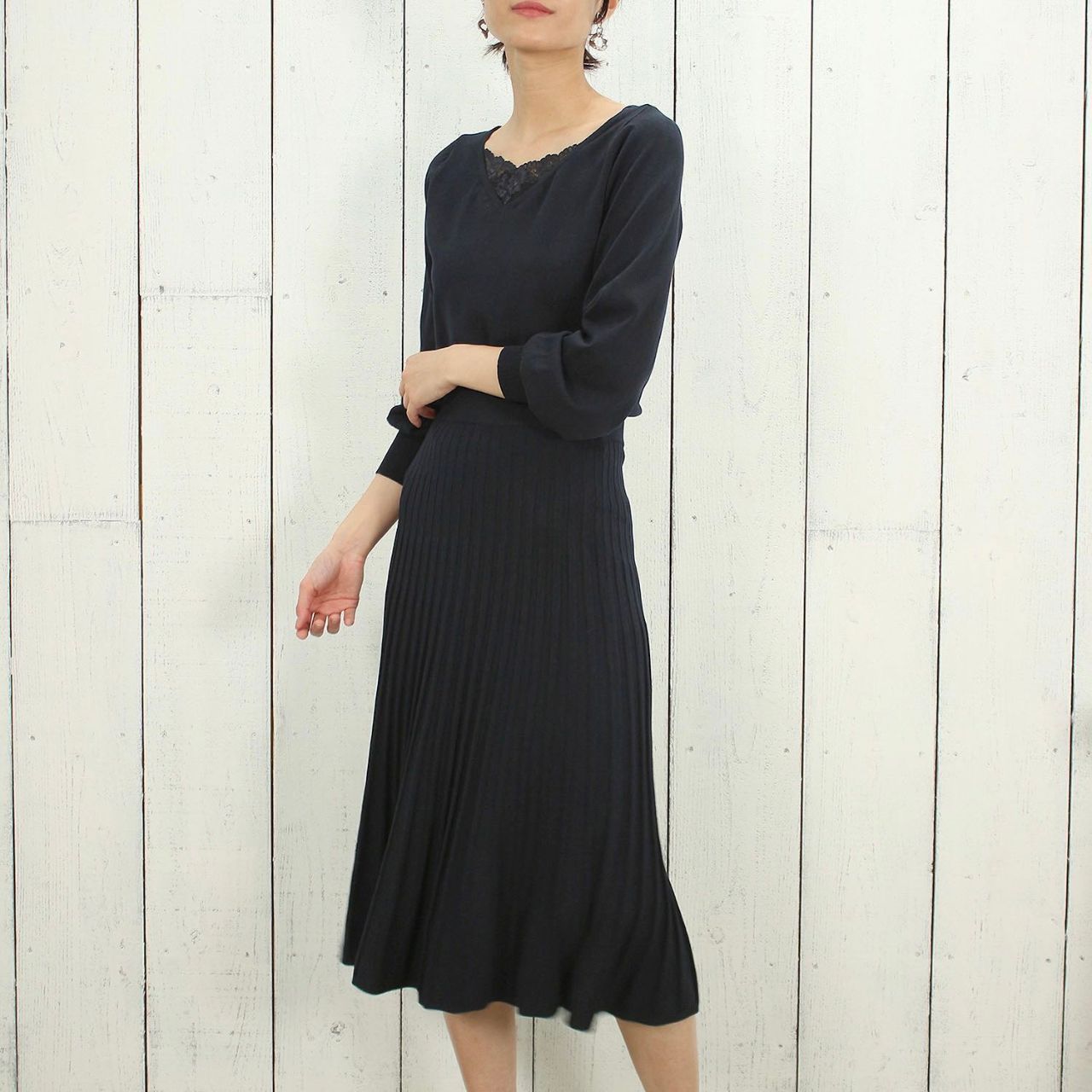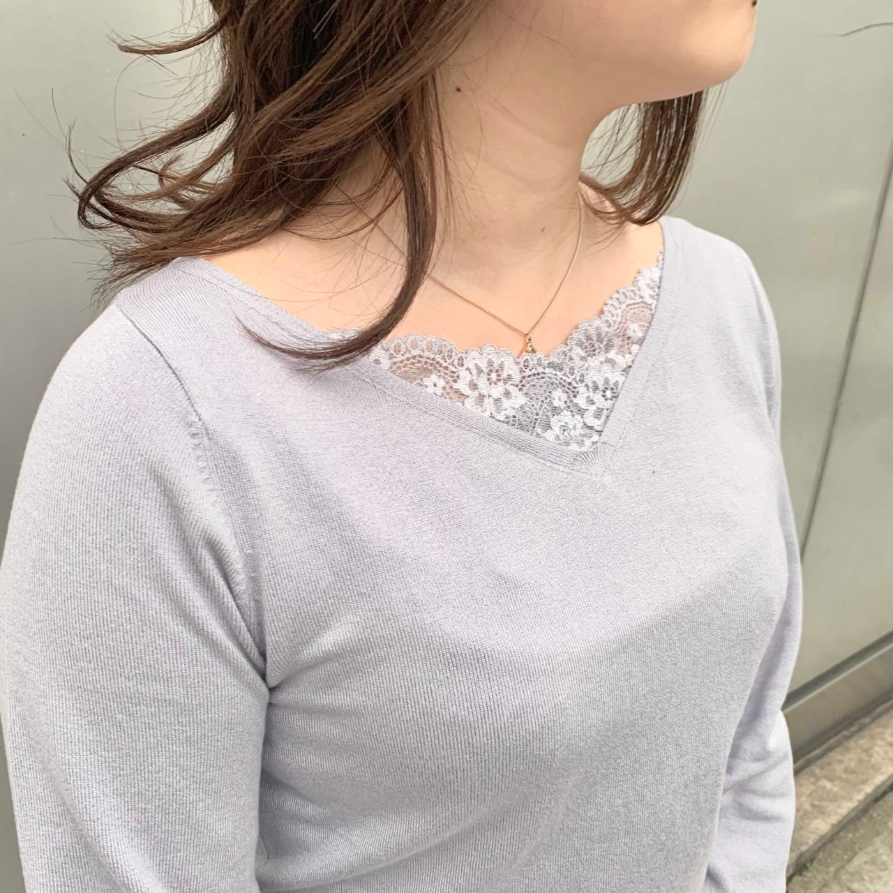 少しラフに見えがちなニット生地ですが、首元にレースがあって一気に華やかで上品な印象になっちゃいます♡