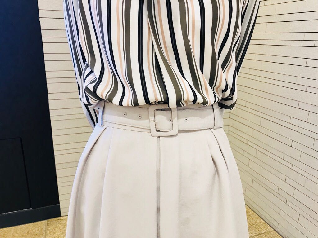 ベルト付きなので、トップスをインにし、気持ちウエスト位置を高くして着ていただくと、とってもキレイです!