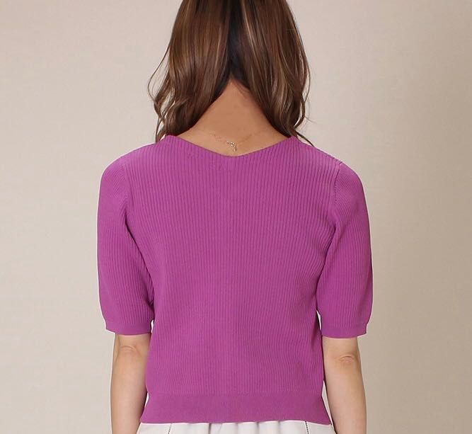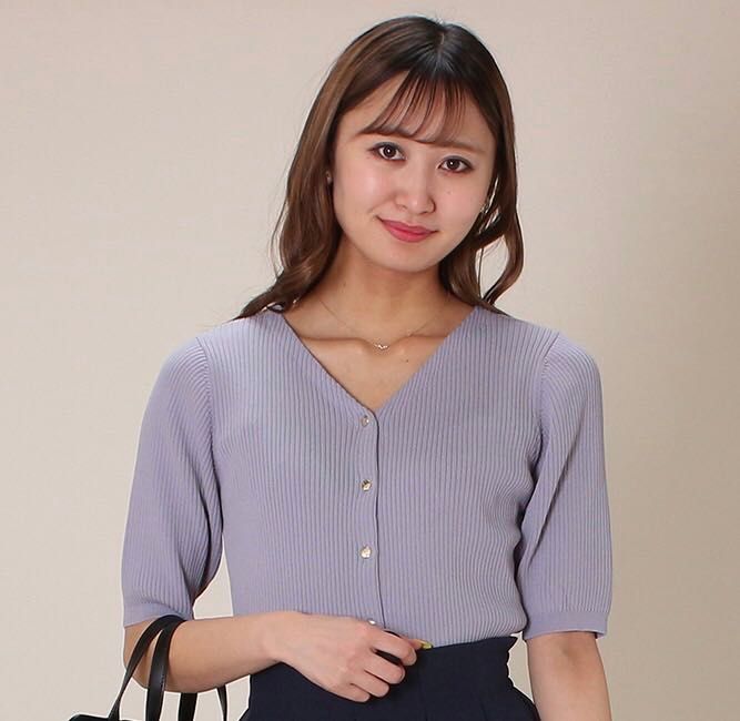 Vネックになっているので顔周りがスッキリして見えますし全体的にもスッキリとして見えるのでスタイルがよく見えますよ♪