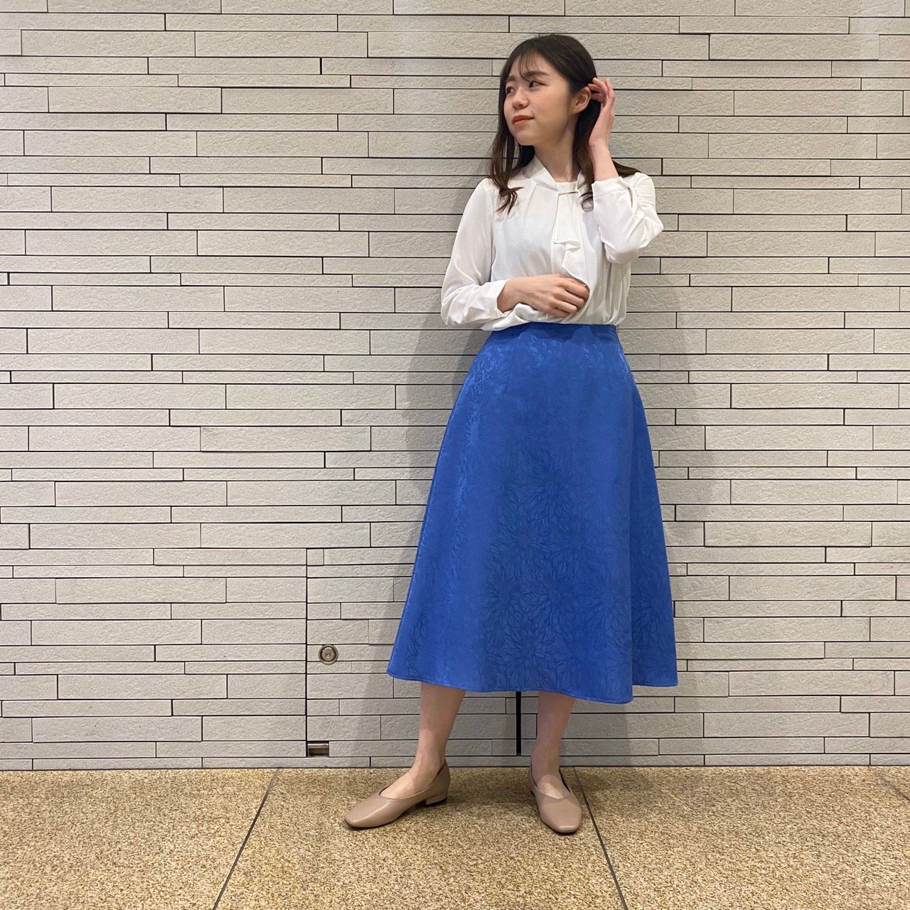 春の仕事服にピッタリのジャガードフレアスカート!!東京駅アストリア八重洲店