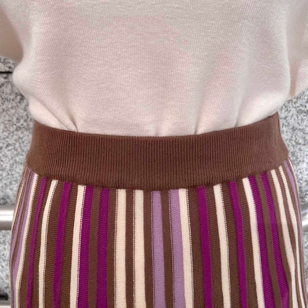ストライプ柄なので縦ラインをすっきりと見せてくれますし、ニット素材なので履き心地がとても楽ちんなんです☺︎
