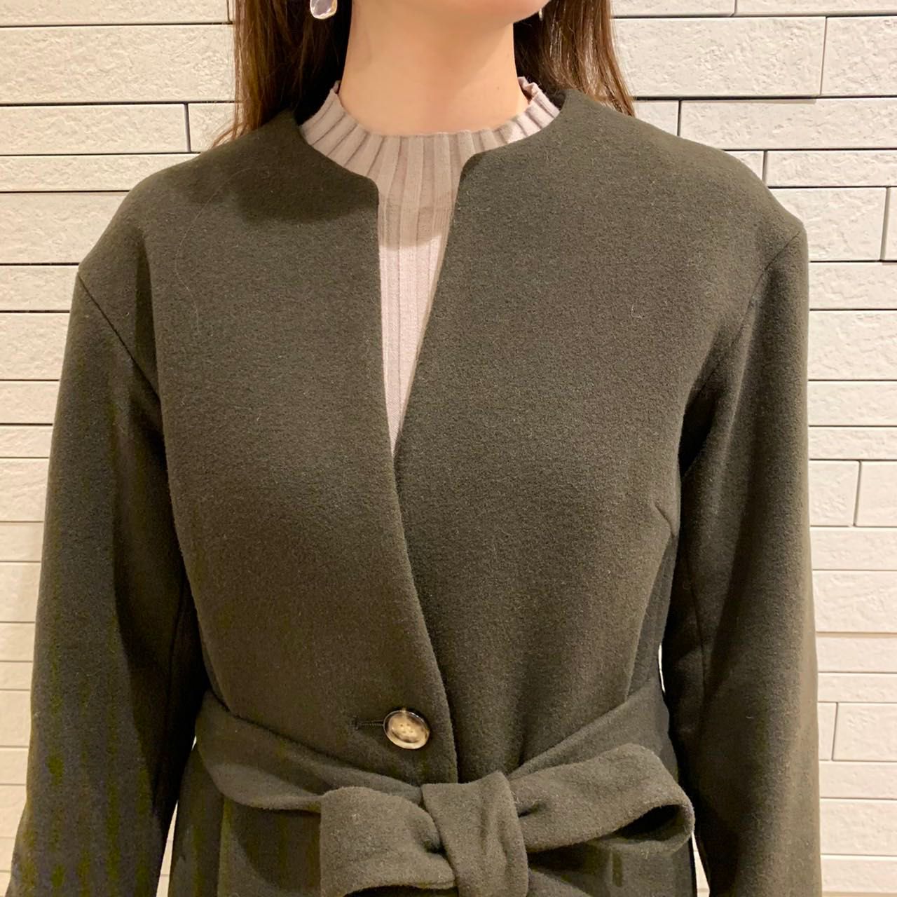 襟元はきれいなキーカラーとなっていてハイネックニットがよく合います!