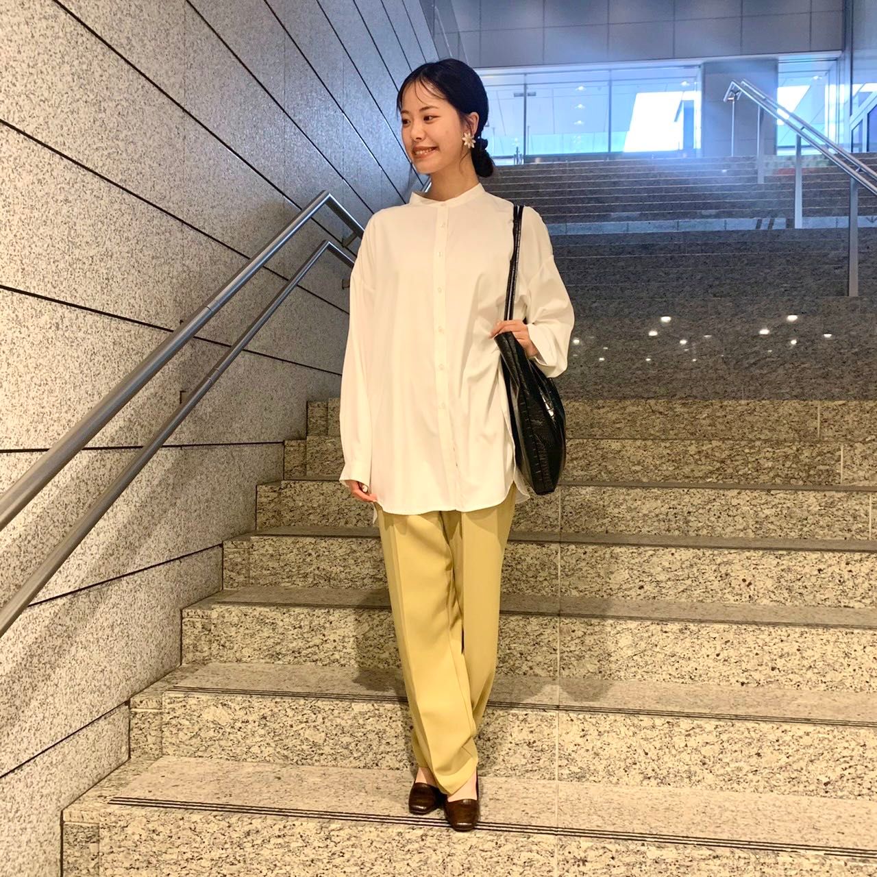 スラックスなどのシュッとしたパンツと合わせて頂くとバランスが取れやすいです♡