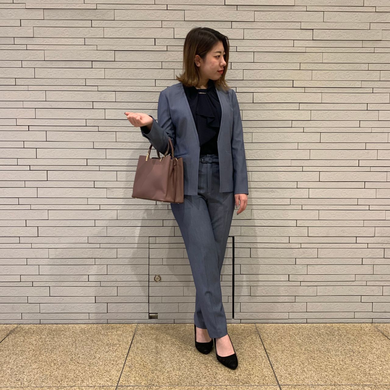 こちらのスーツはウォッシャブルになっていて、ストレッチが効いているので動きやすいです。また、シンプルなデザインなので他の持ち物ともコーディネートしやすいのでぜひ気になる方はお店に足を運んでみてください。