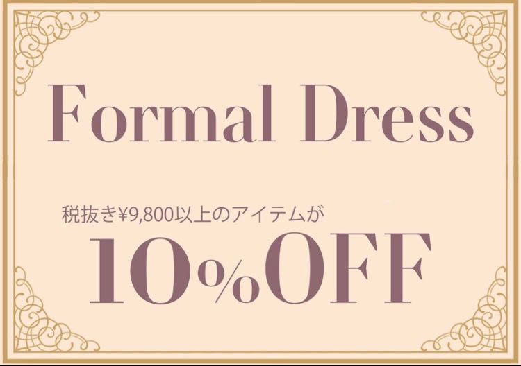そしてさらに!フォーマルフェアもまだまだ実施中です!こちらは税抜9800円以上のフォーマルドレスが対象になります◎ さらに今なら、10%offと併用でノベルティもお渡ししております!パーティ等で使えるイヤリング/ピアスプレゼント中です♡ぜひご利用ください!