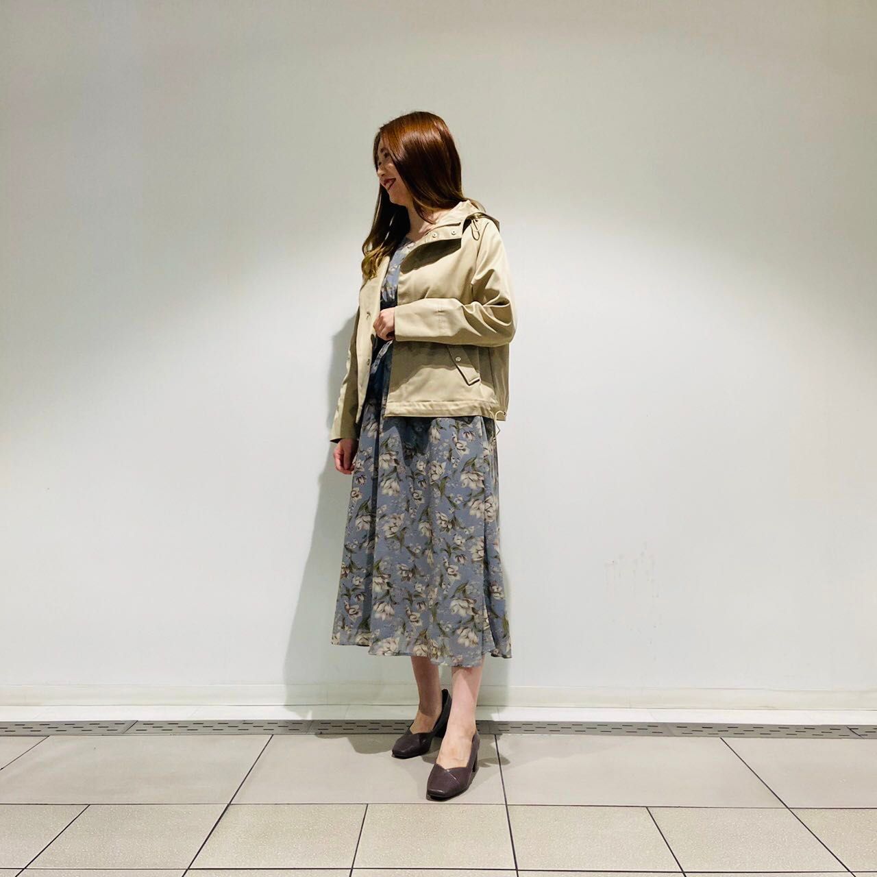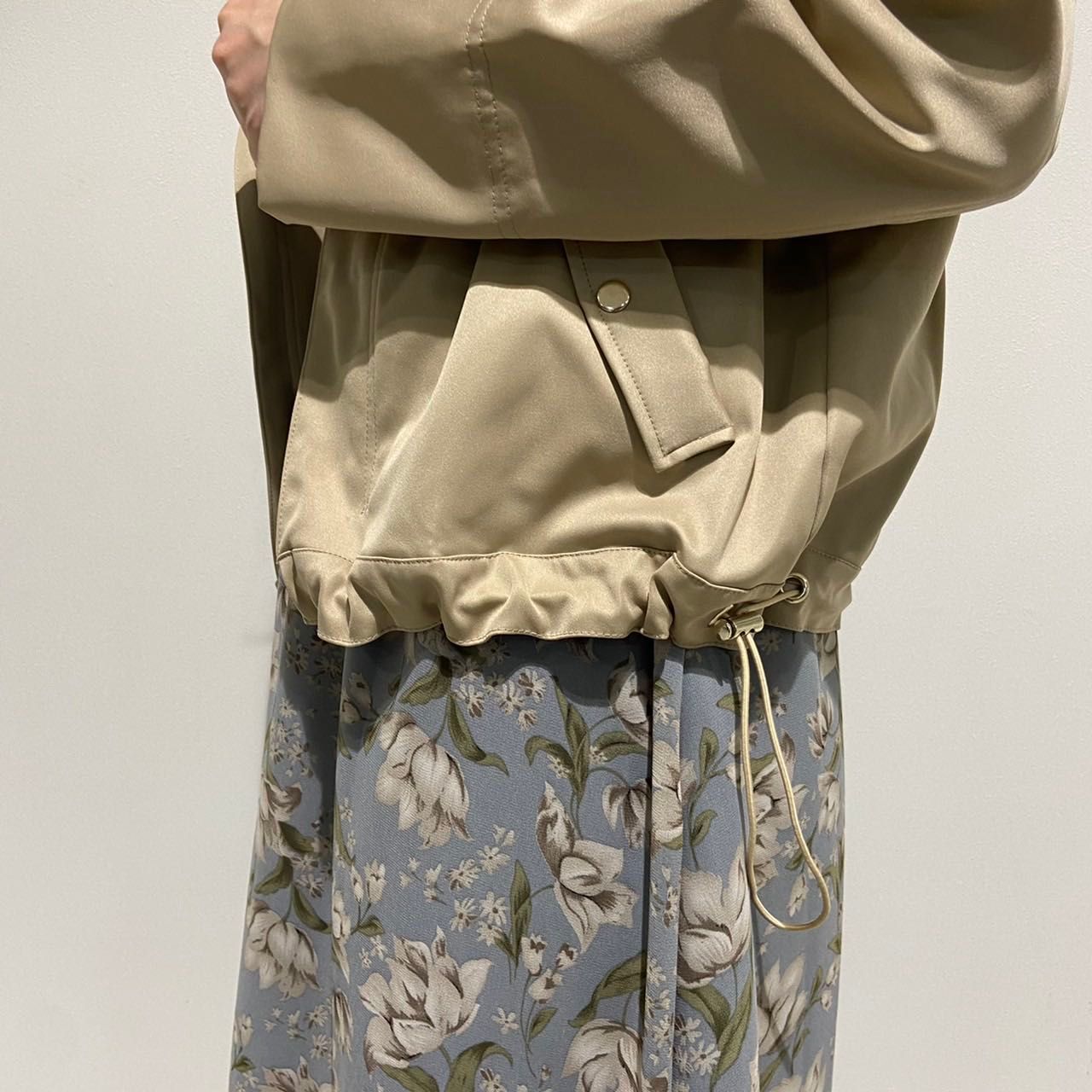 横にゴムが入っていて、縮めるとコンパクトなイメージでも着られます!