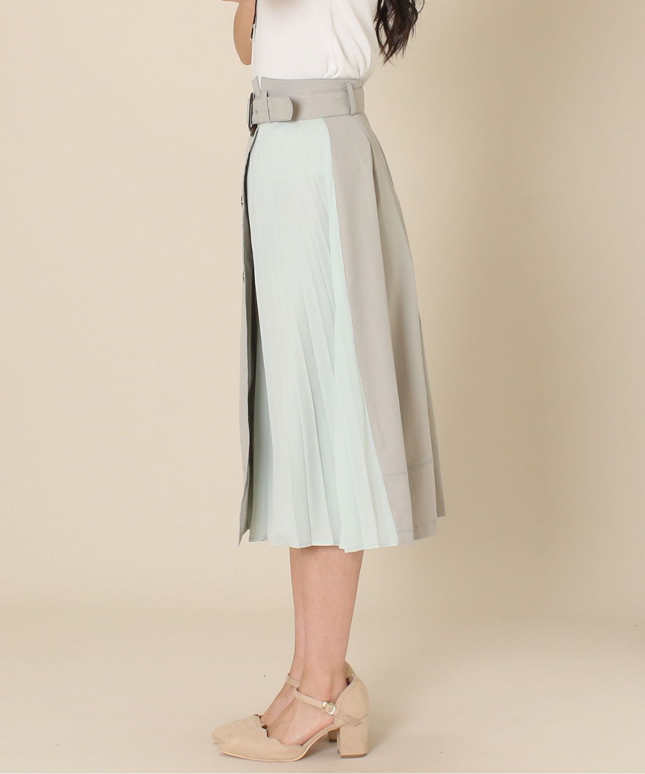 プリーツ部が動くたびに揺らめいて女性らしい柔らかさもでます!