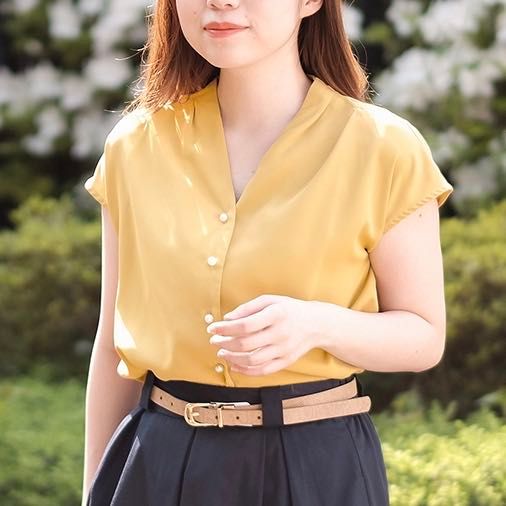 オフィススタイルでも使える!パールボタンブラウス♡東京駅八重洲店