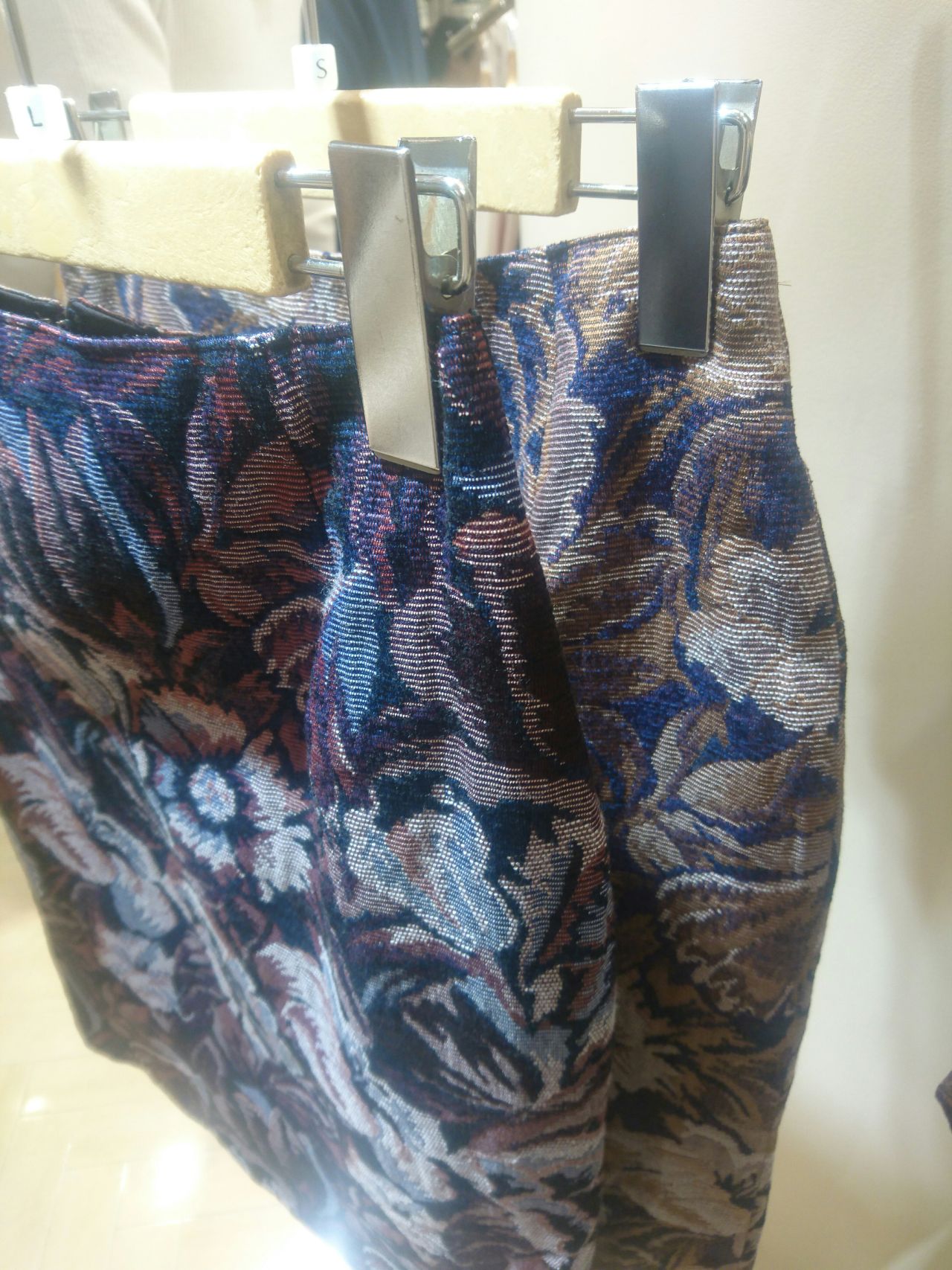 こちらのお色展開はネイビーとブラウンという秋らしく大人っぽい印象になっております!丈感も丁度良く、柄がとても素敵で可愛らしいです♪通勤スタイルにも使えると思います!!