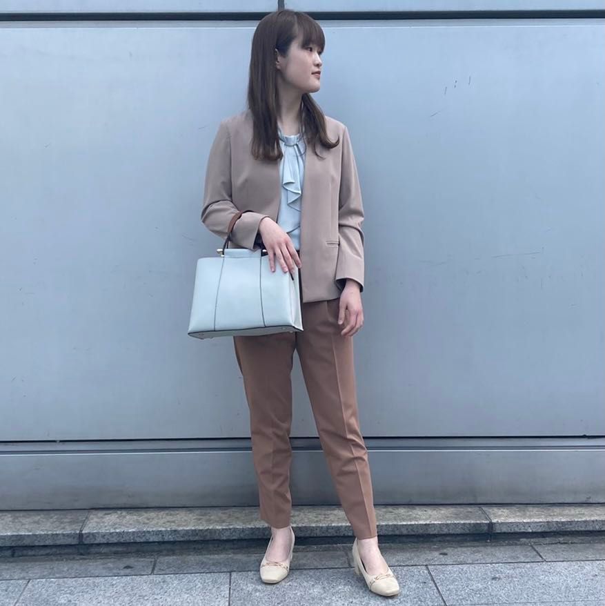 オフィスカジュアルでスカートでもパンツでも組み合わせやすいです!また、ショート丈なので小柄な方は丁度良くスッキリ着ていただけます!