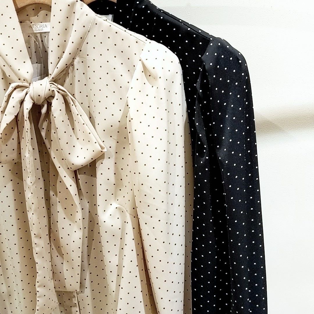 通勤にピッタリ!ドット柄が上品なリボンタイブラウスのご紹介♡東京駅 ヤエチカ店