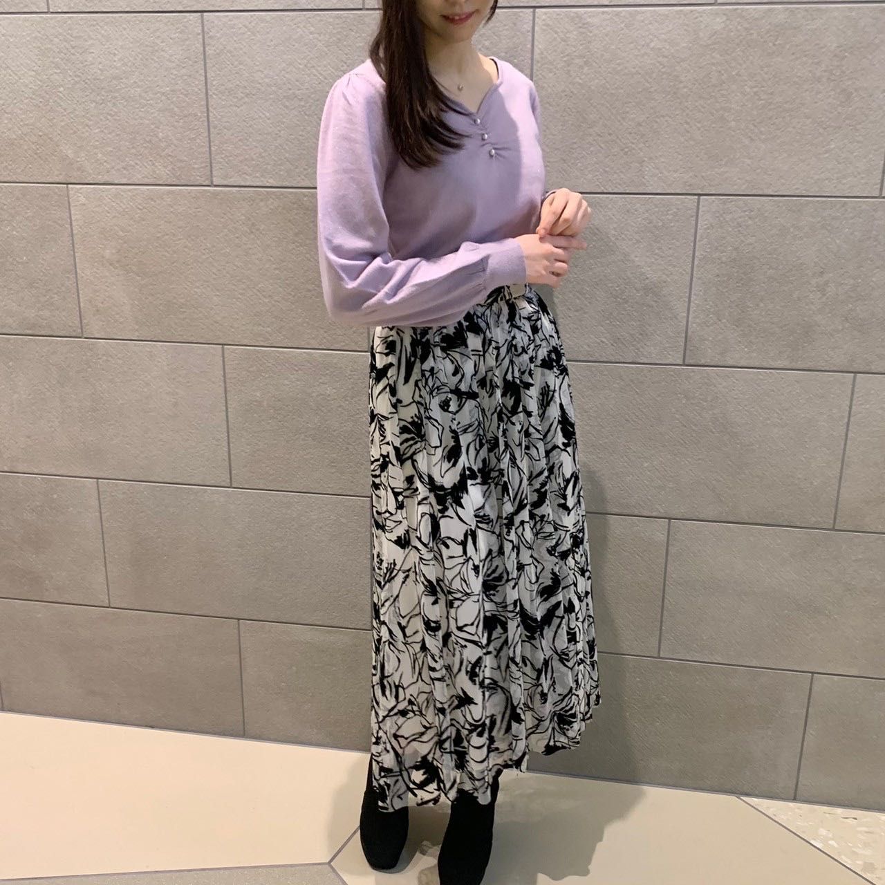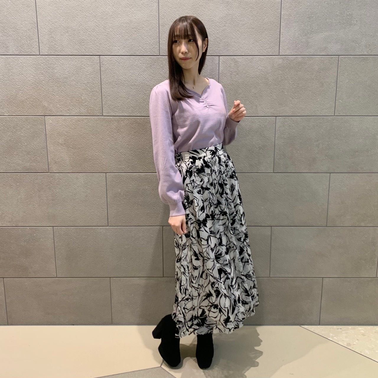 今回はまだ肌寒い今でも着られるようにニットと合わせました♡