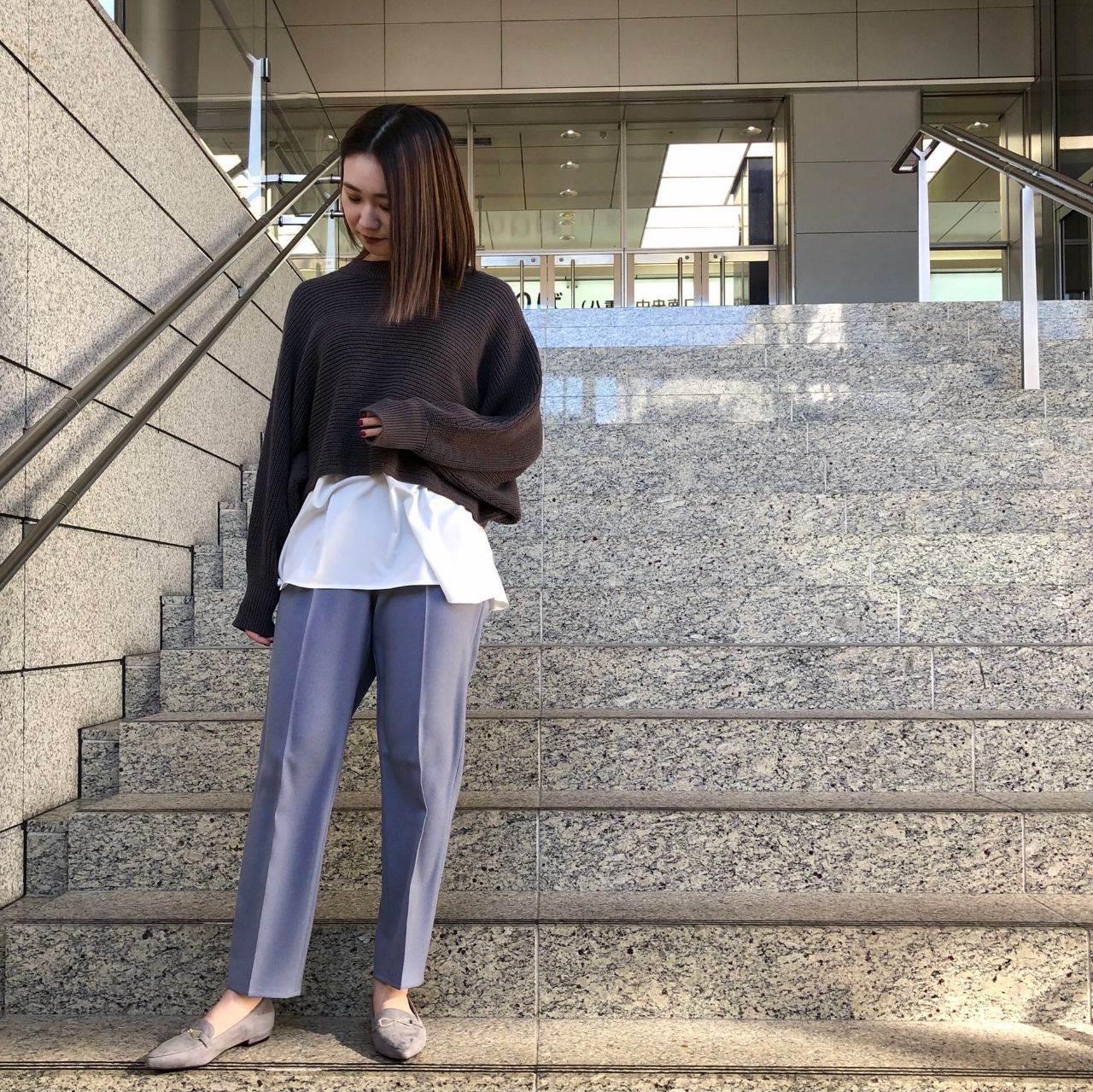 ニットはドルマンスリーブになっているのでゆったり着ることができますよ!!!