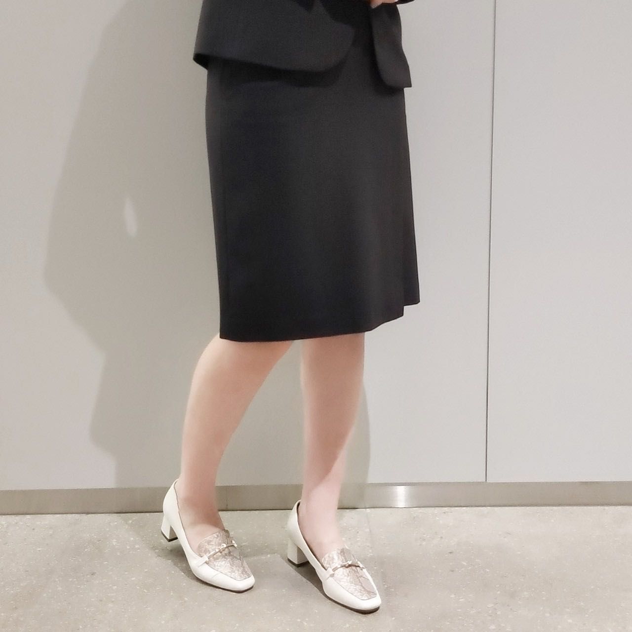 セットのタイトスカートは膝に少しかかるくらいの上品かつ動きやすい丈感となっております♡