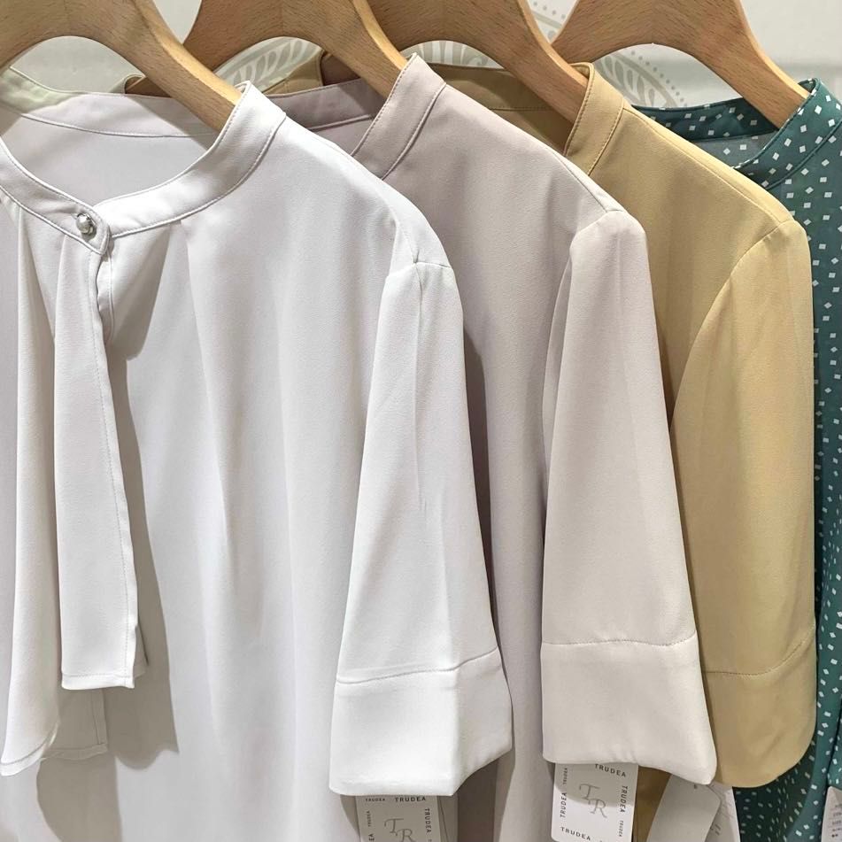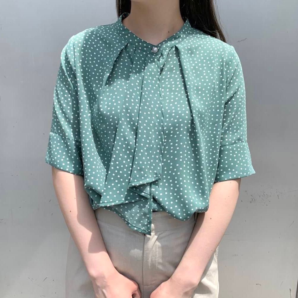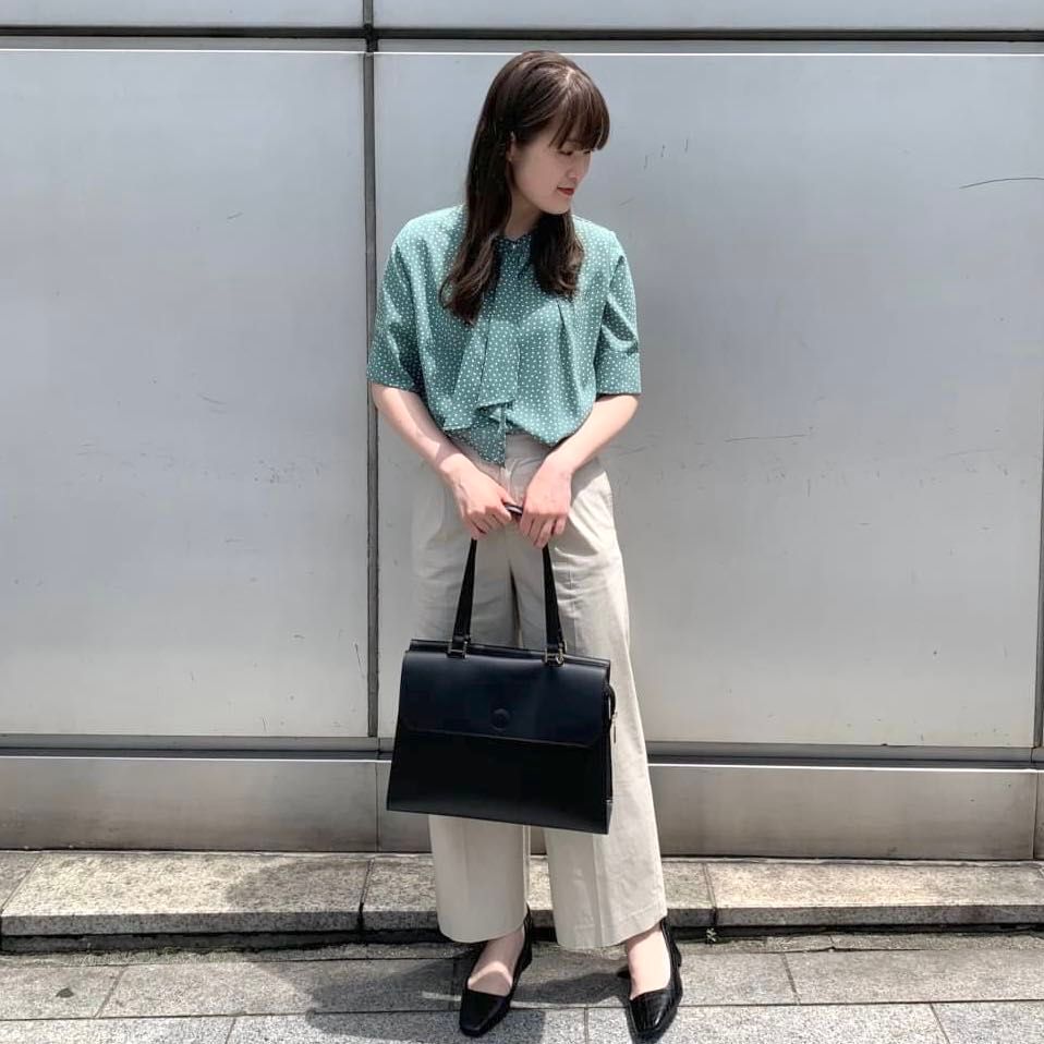 夏の通勤着にぴったり♡パール付きボウタイブラウス♡東京駅八重洲店