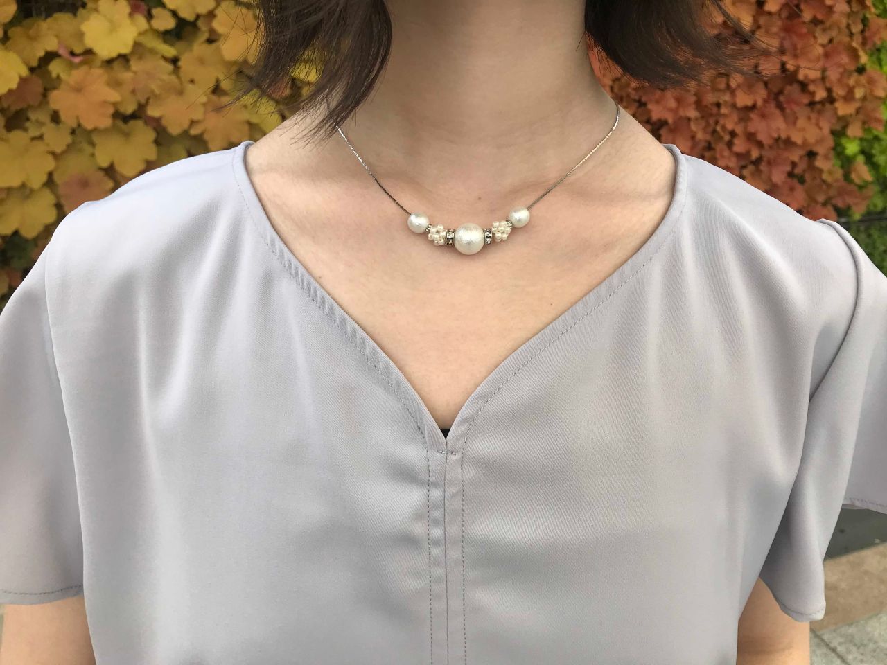 ハートネックなので首元スッキリと柔らかい印象で着ていただけます。